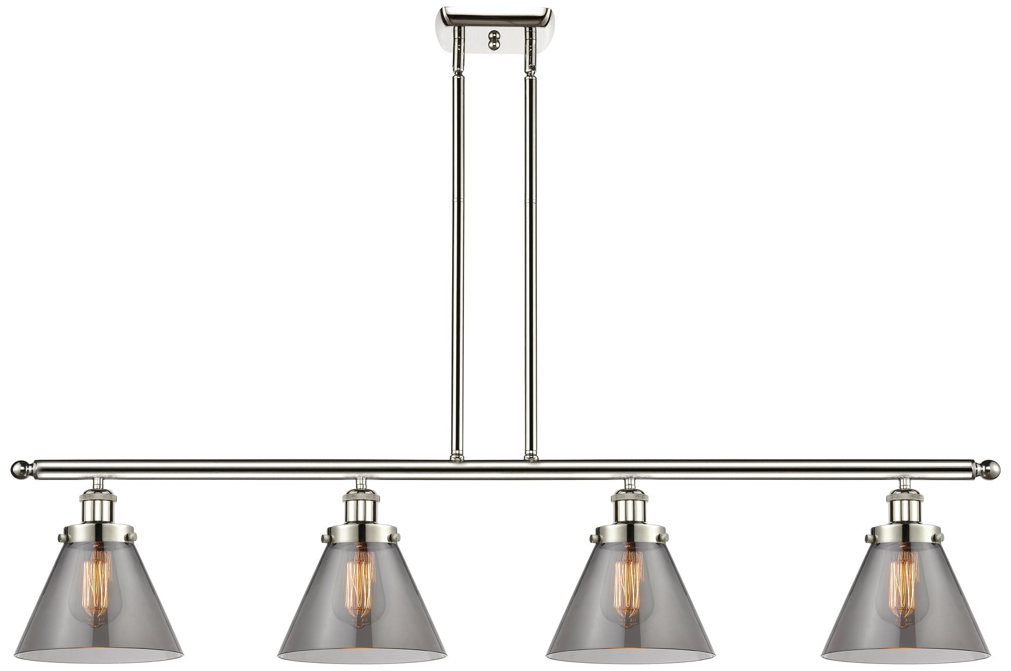 Cone 48" Wide 4 Light Polished Nickel Island Light w/ Plated Smoke Sha