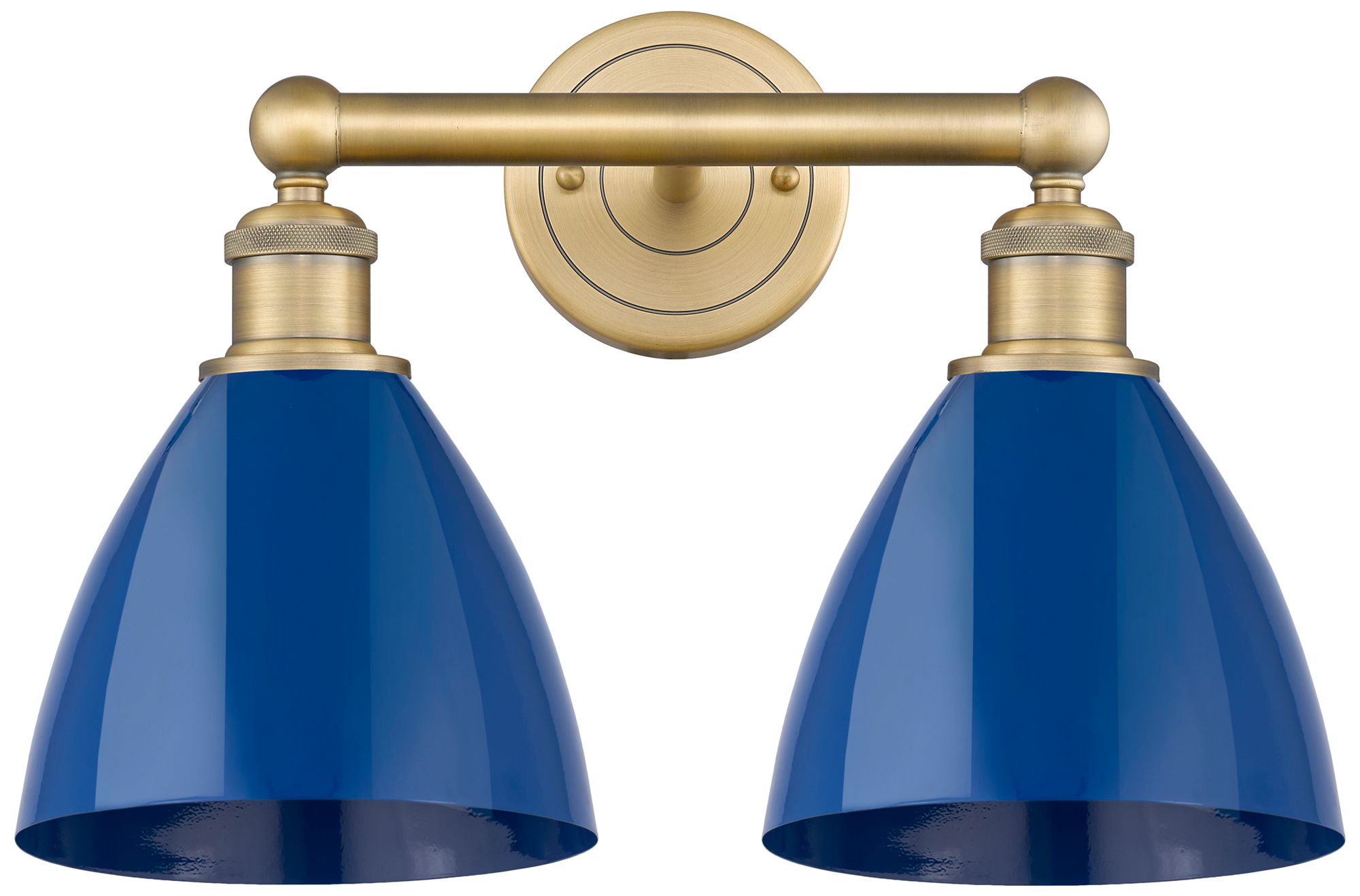 Plymouth Dome 16.5"W 2 Light Brushed Brass Bath Light With Blue Shade