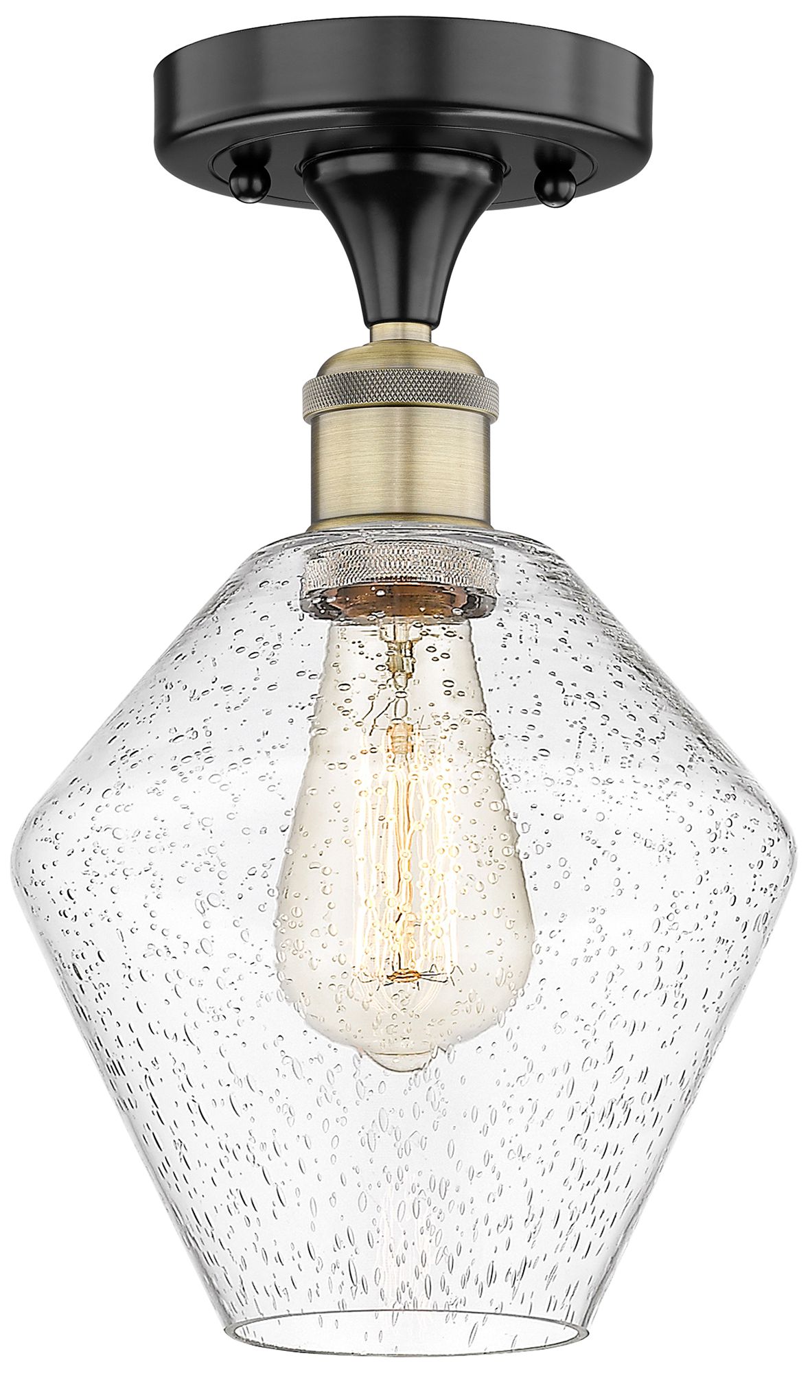 Cindyrella 8"W Black Antique Brass Semi.Flush Mount With Seedy Glass S