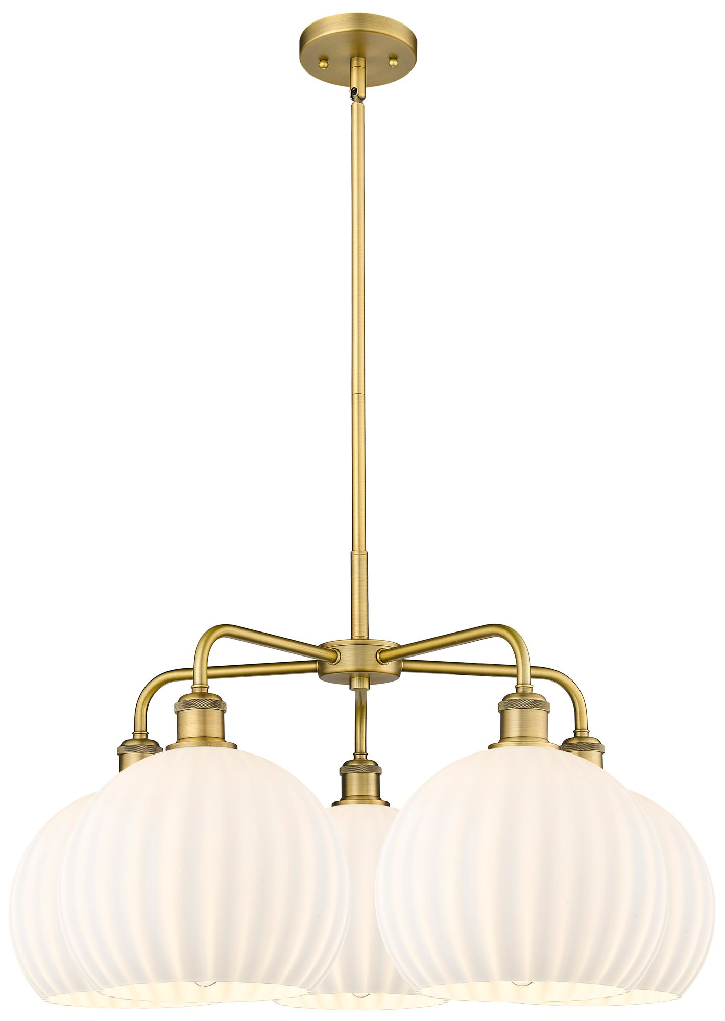 Ballston 28"W 5 Light Brushed Brass Stemmed Chandelier w/ Venetian Sha