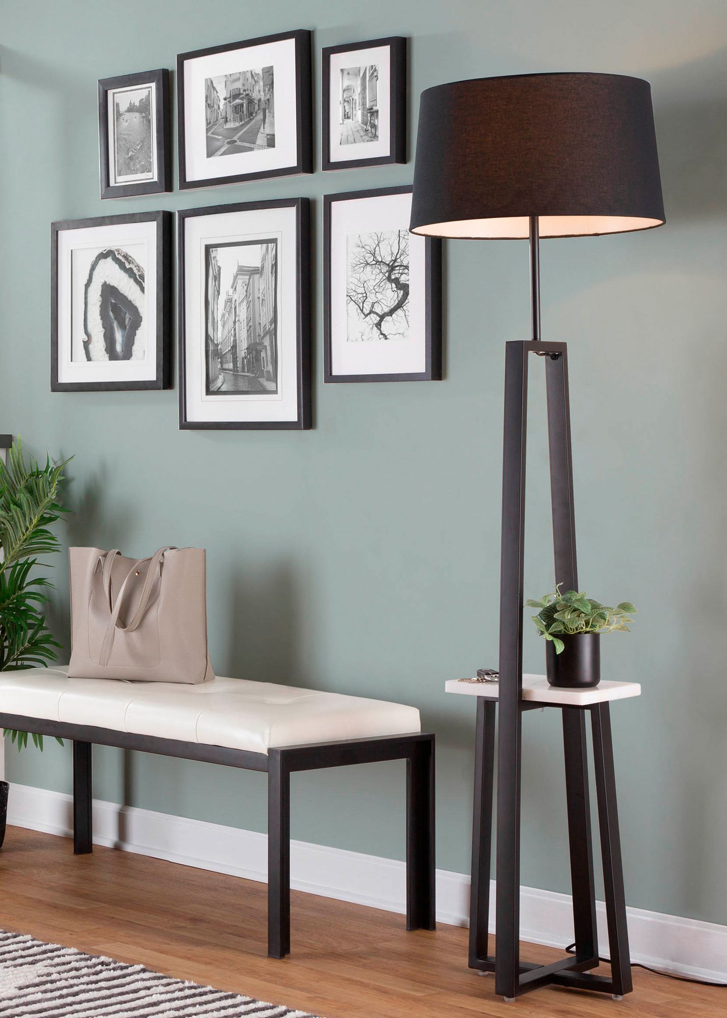 Cosmo Black Metal and White Marble Shelf Floor Lamp