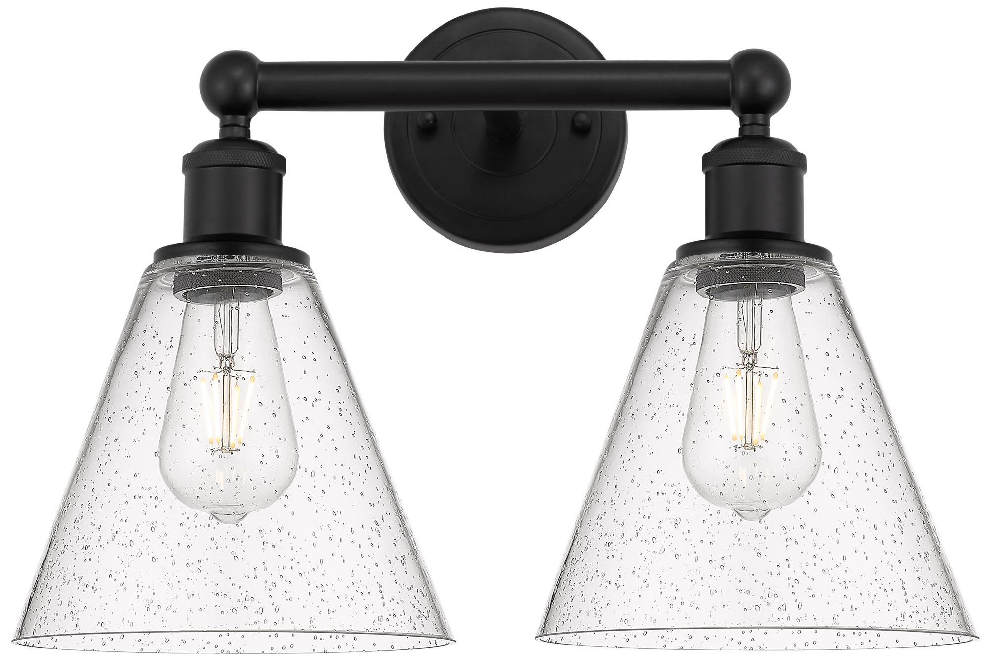 Berkshire 17" Wide 2 Light Matte Black Bath Vanity Light With Seedy Sh