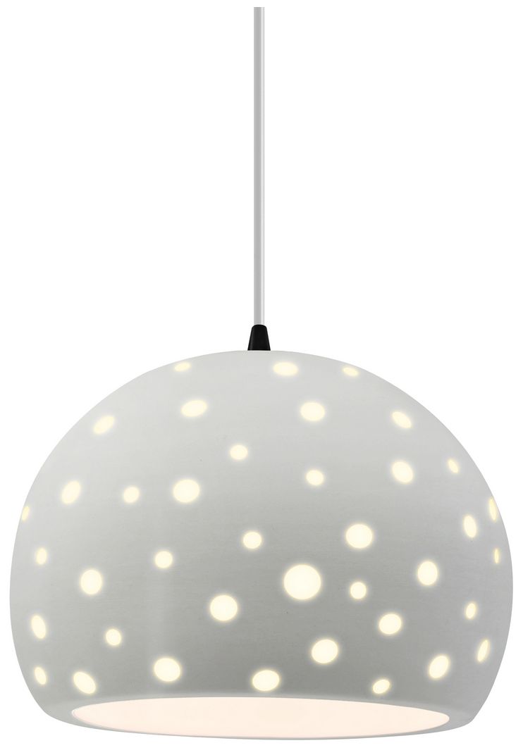 Perforated Globe 10"W Matte White, Nickel Pendant - Beige Twist Cord
