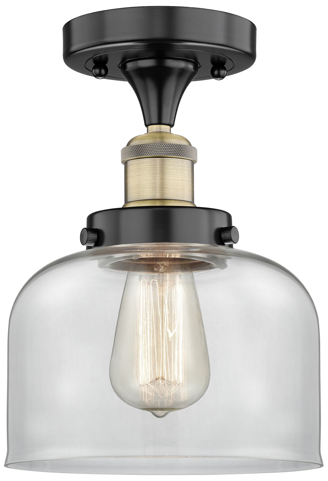 Bell 7.75" Wide Black Antique Brass Semi.Flush Mount With Clear Glass