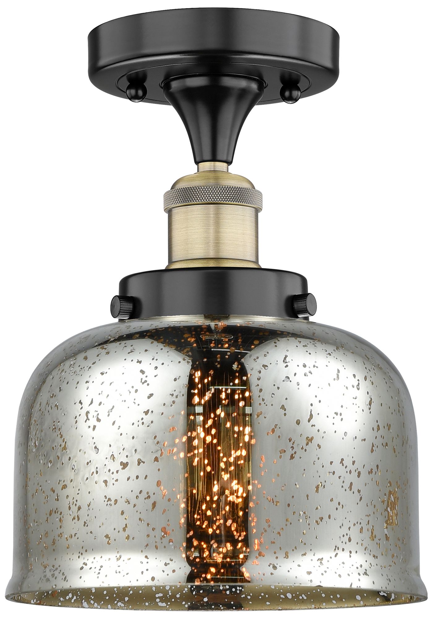 Bell 7.75"W Black Antique Brass Semi.Flush Mount w/ Mercury Glass Shad