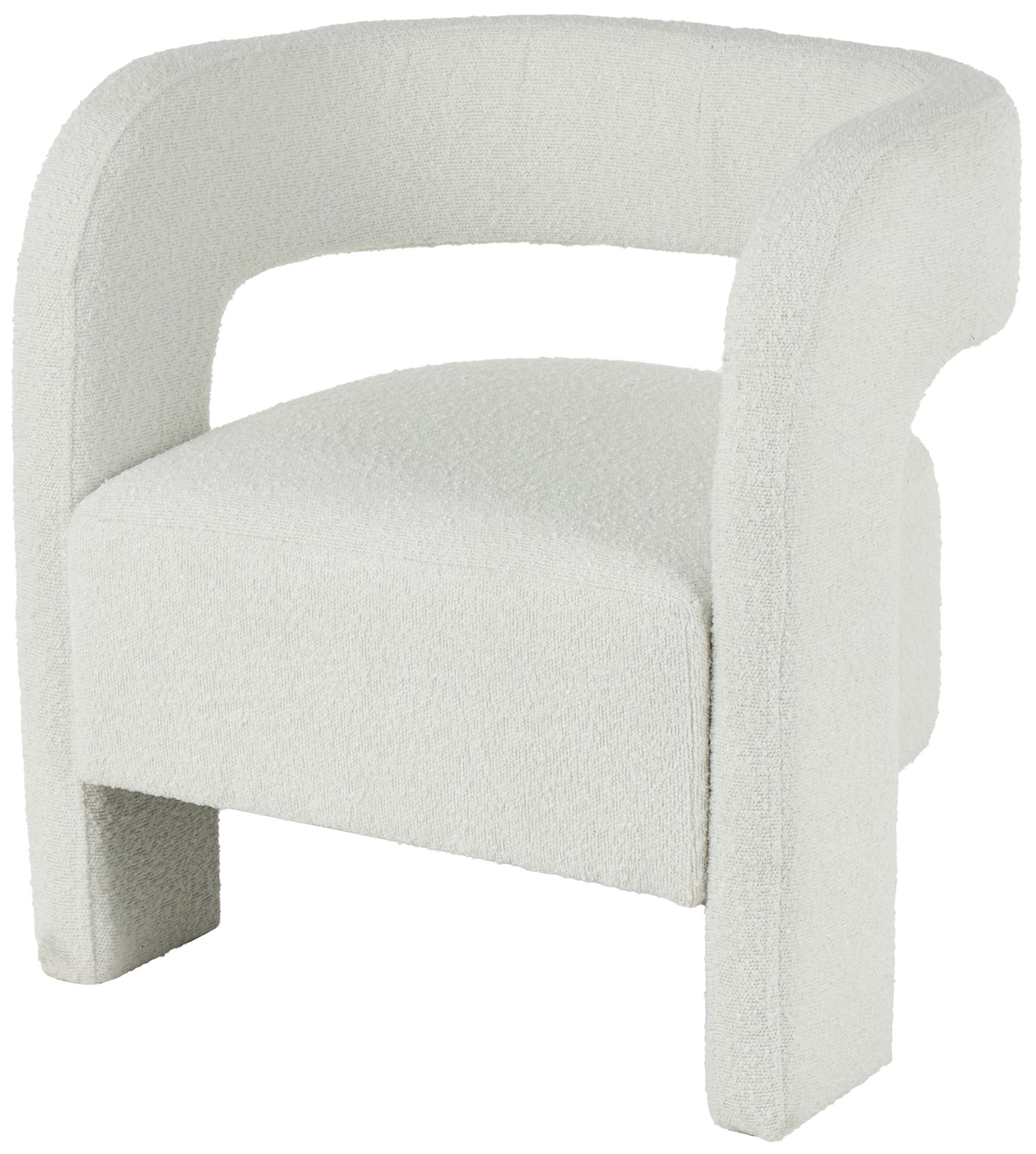 White Polyester Curved Back Round Boucle Accent Chair, 28" x 22" x 28"