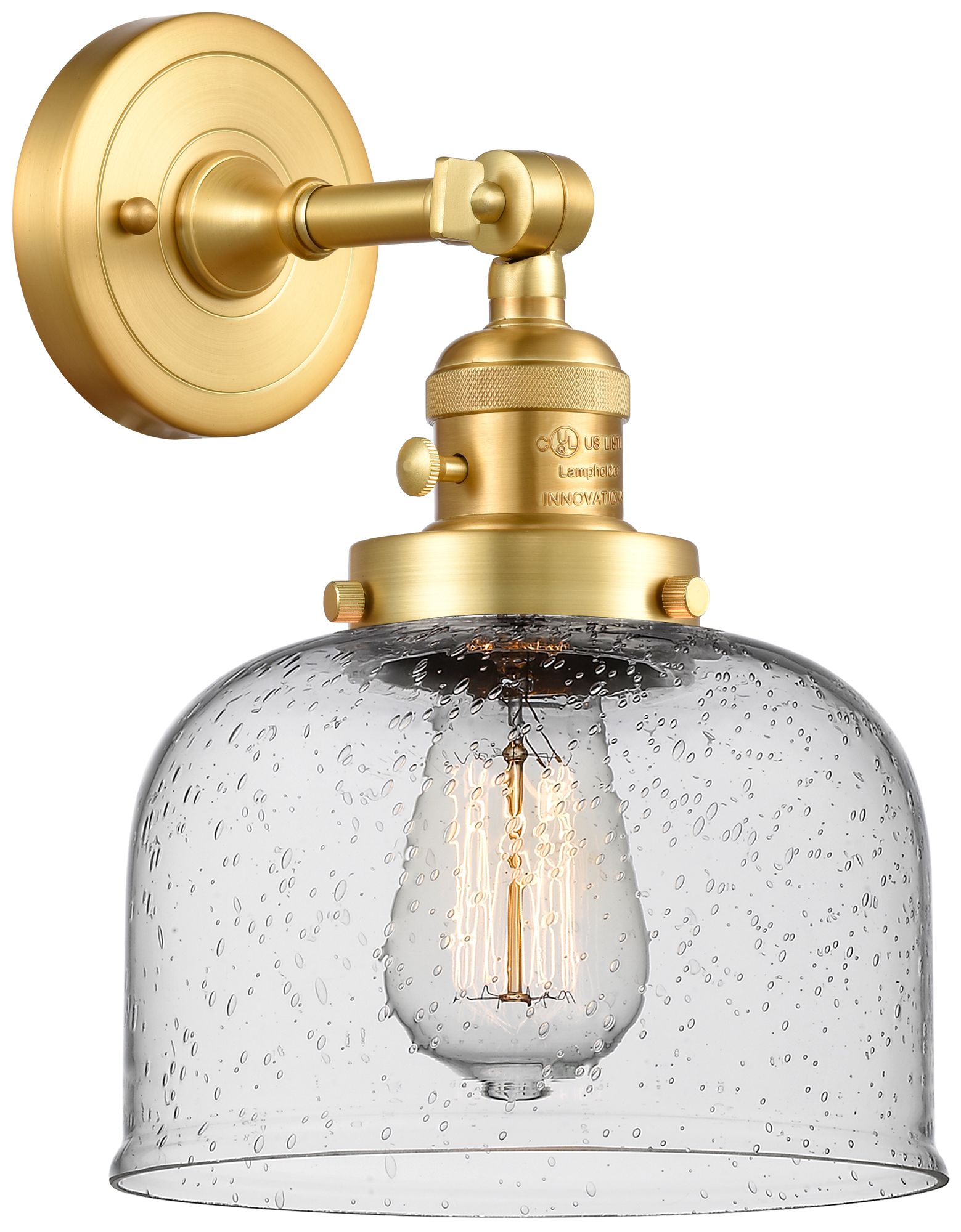 Bell 8" Satin Gold Sconce w/ Seedy Shade