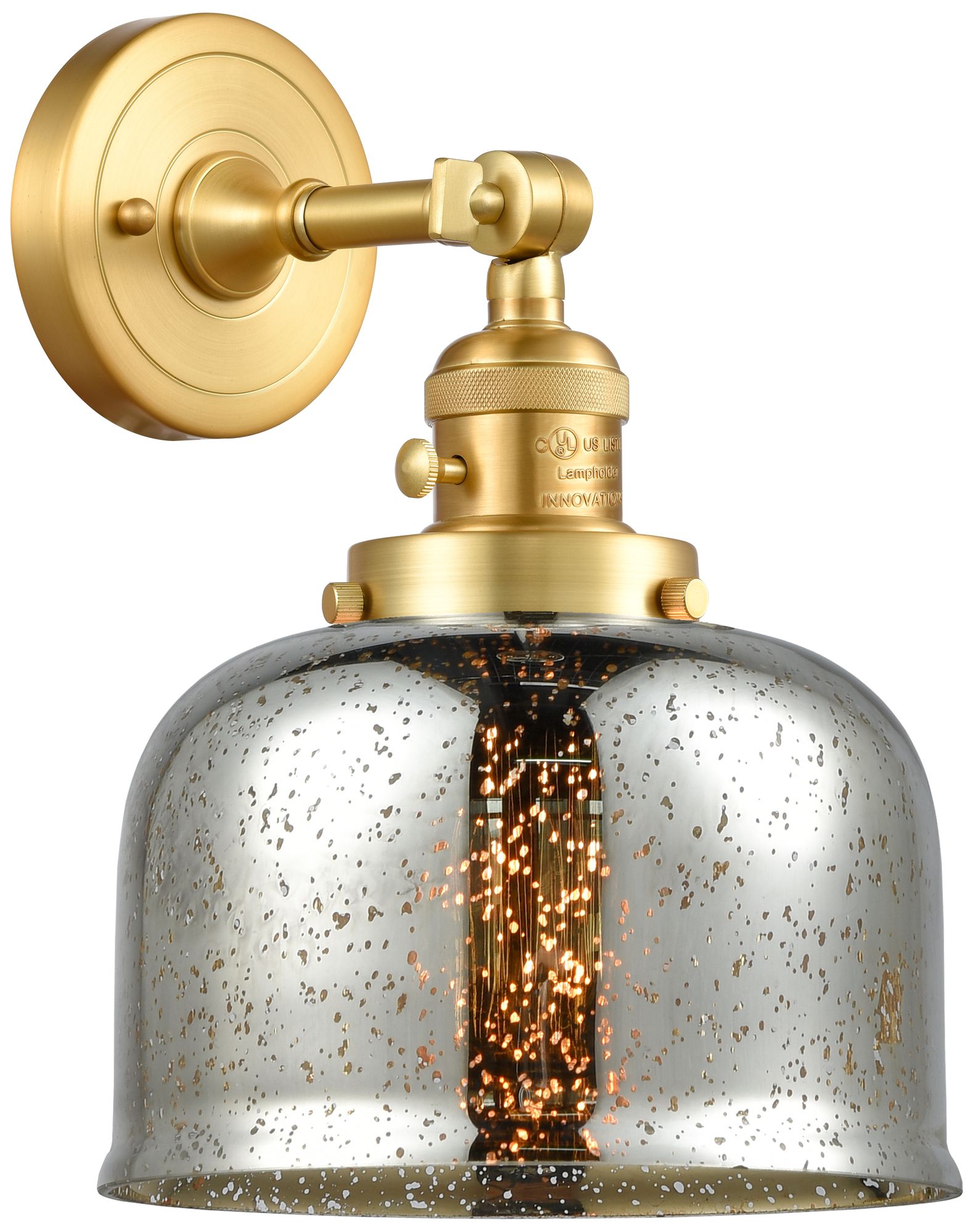Bell 8" Satin Gold Sconce w/ Silver Plated Mercury Shade