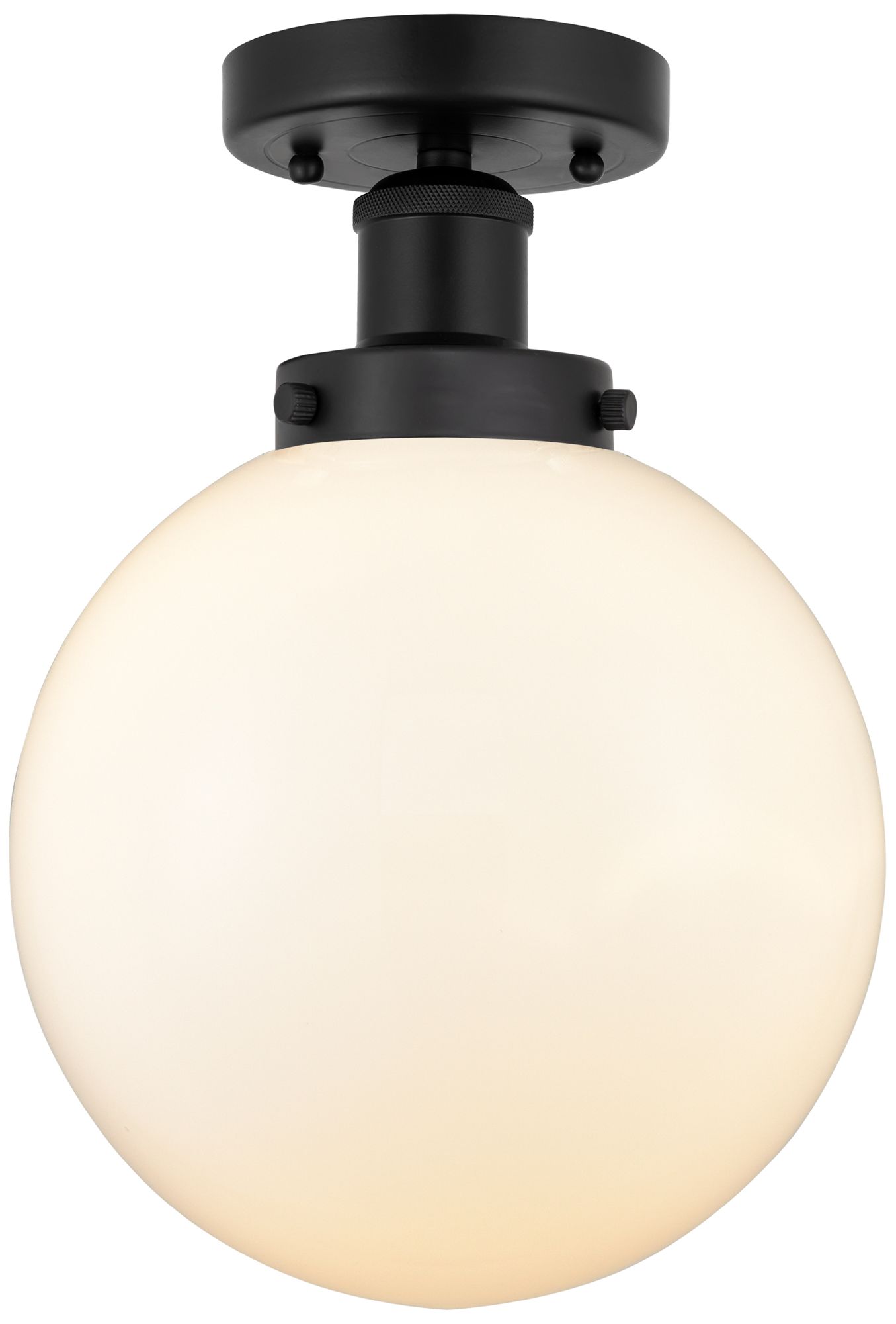 Edison Large Beacon 7" Matte Black Semi Flush Mount w/ Matte White Sha