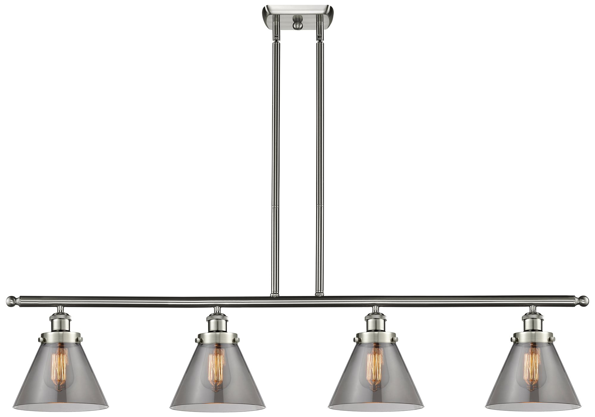 Cone 48"W 4 Light Brushed Satin Nickel Island Light w/ Plated Smoke Sh