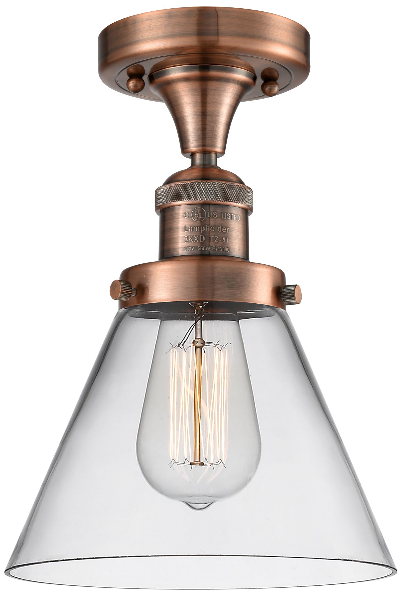 Cone 7.75" Wide Copper Semi Flush Mount w/ Clear Shade