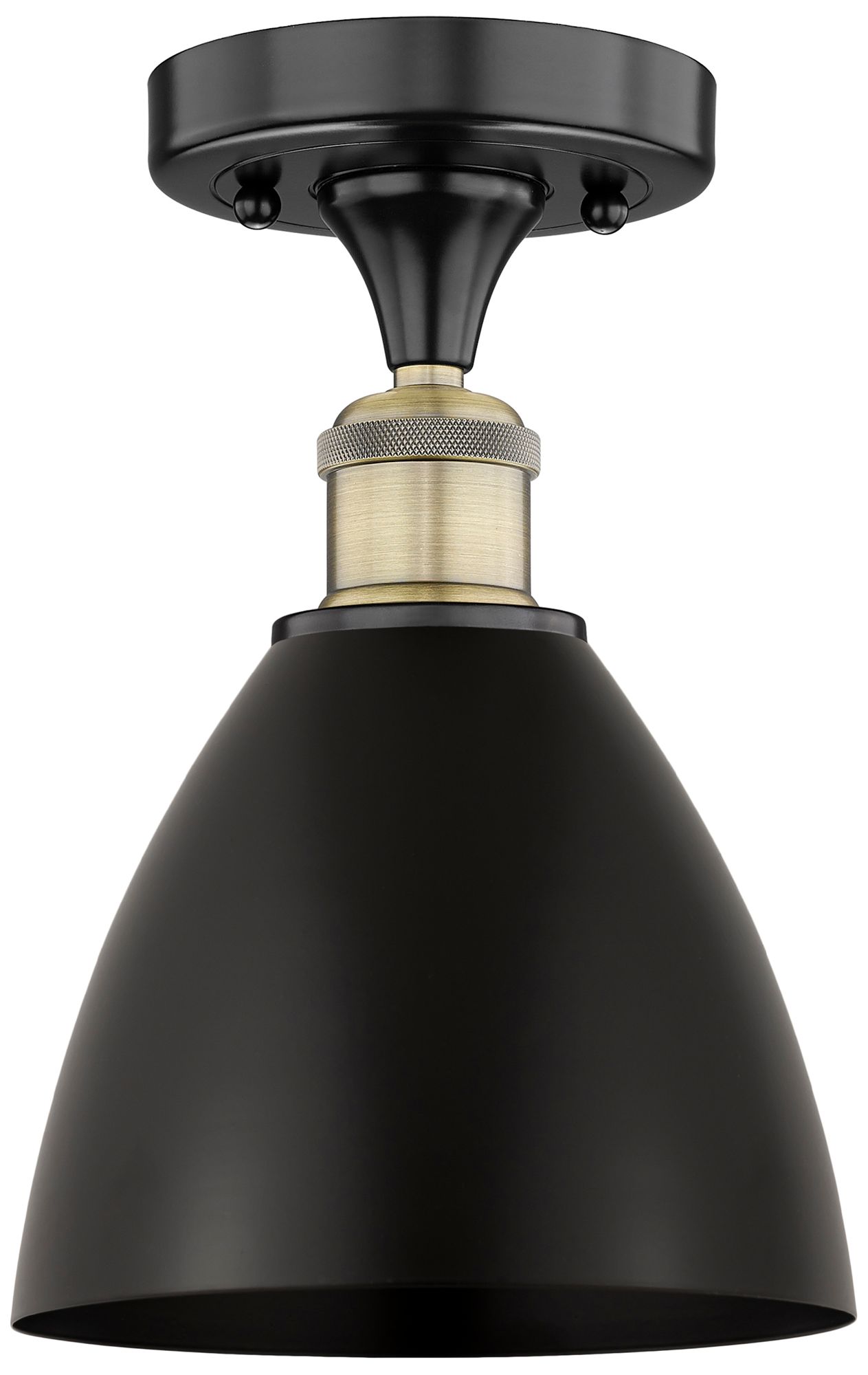 Metal Bristol 7.5"W Black Antique Brass Semi.Flush Mount w/ Black Shad