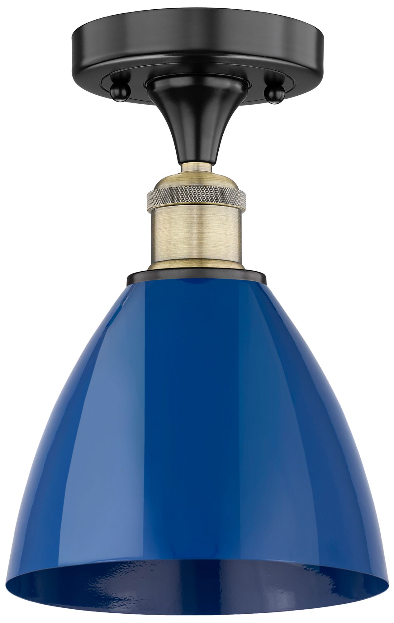 Plymouth Dome 7.5"W Black Antique Brass Semi.Flush Mount With Blue Sha