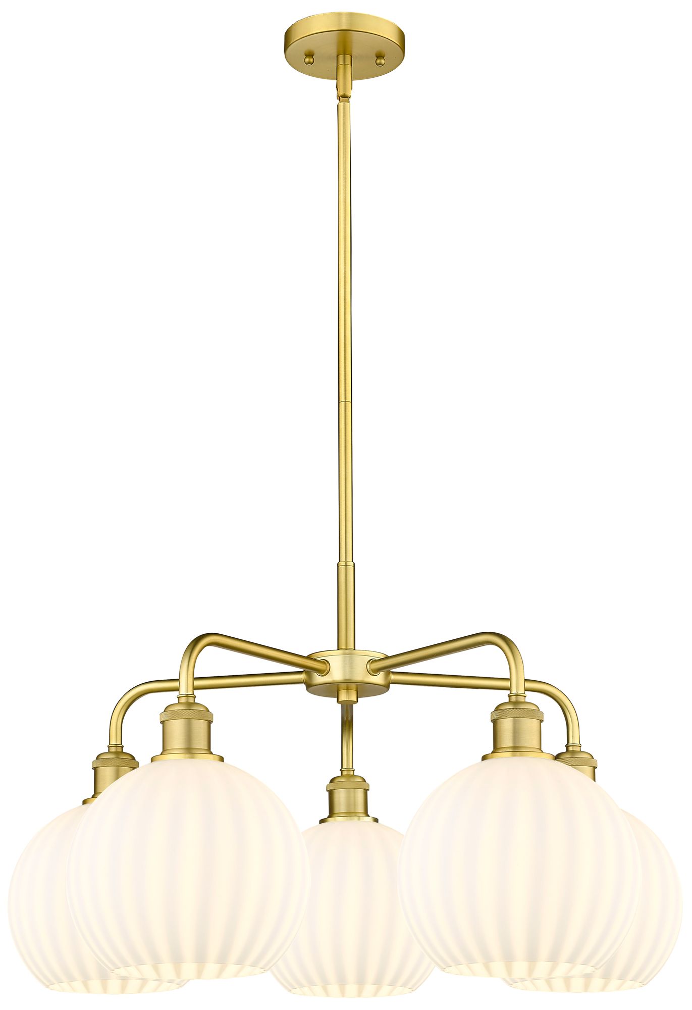 Ballston 26"W 5 Light Satin Gold Stemmed Chandelier w/ White Venetian