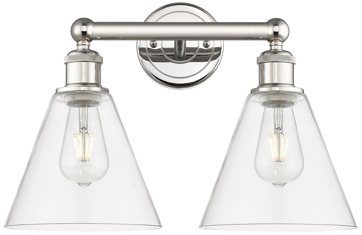 Berkshire 17"W 2 Light Polished Nickel Bath Vanity Light With Clear Sh