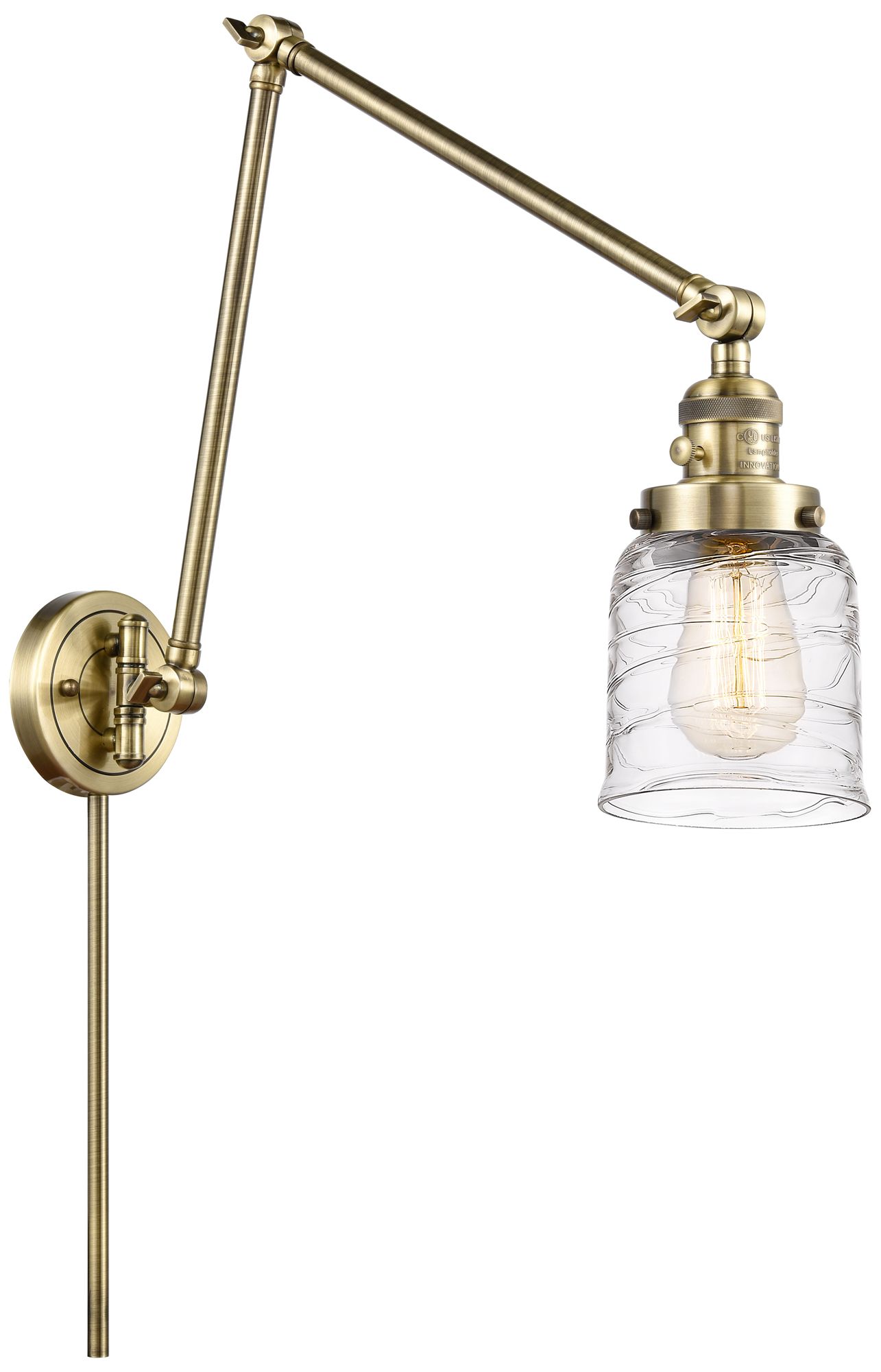Bell 8" Antique Brass LED Double Swing Arm With Deco Swirl Shade