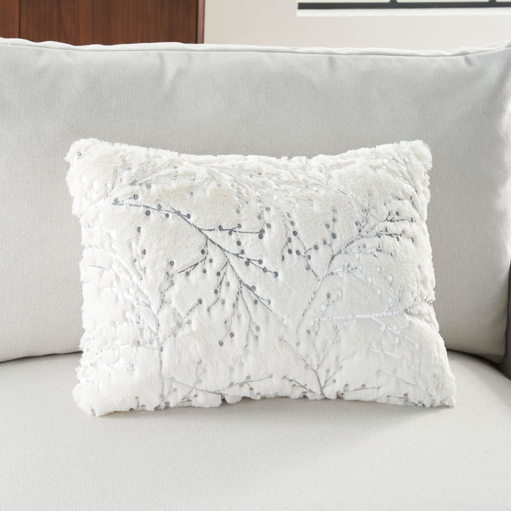 Faux Fur Ivory Silver Metallic Branches 20" x 14" Pillow