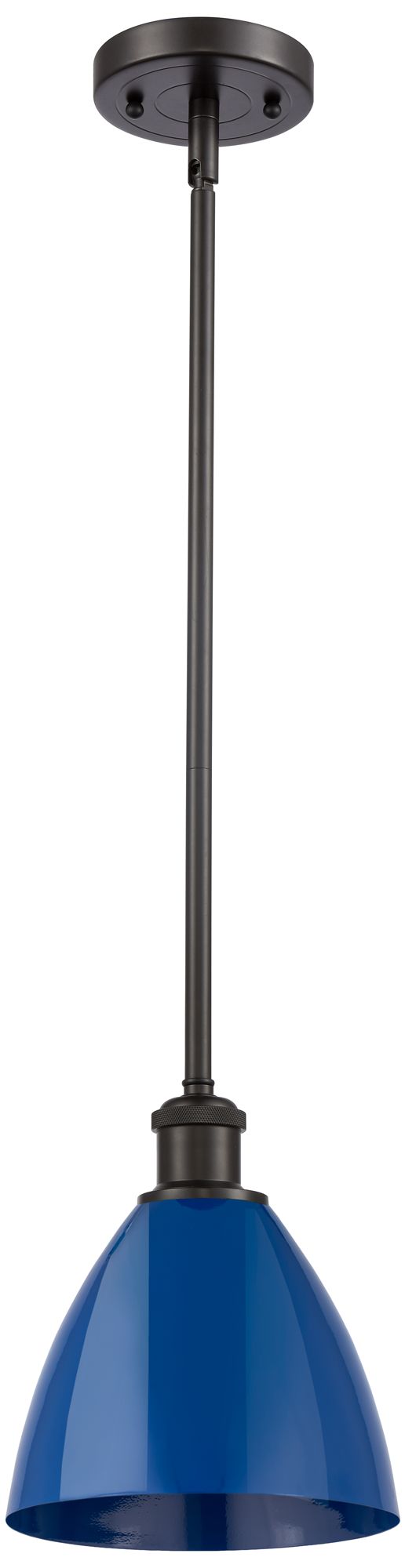 Plymouth Dome 7.5" Wide Oil Rubbed Bronze Stem Hung Pendant w/ Blue Sh