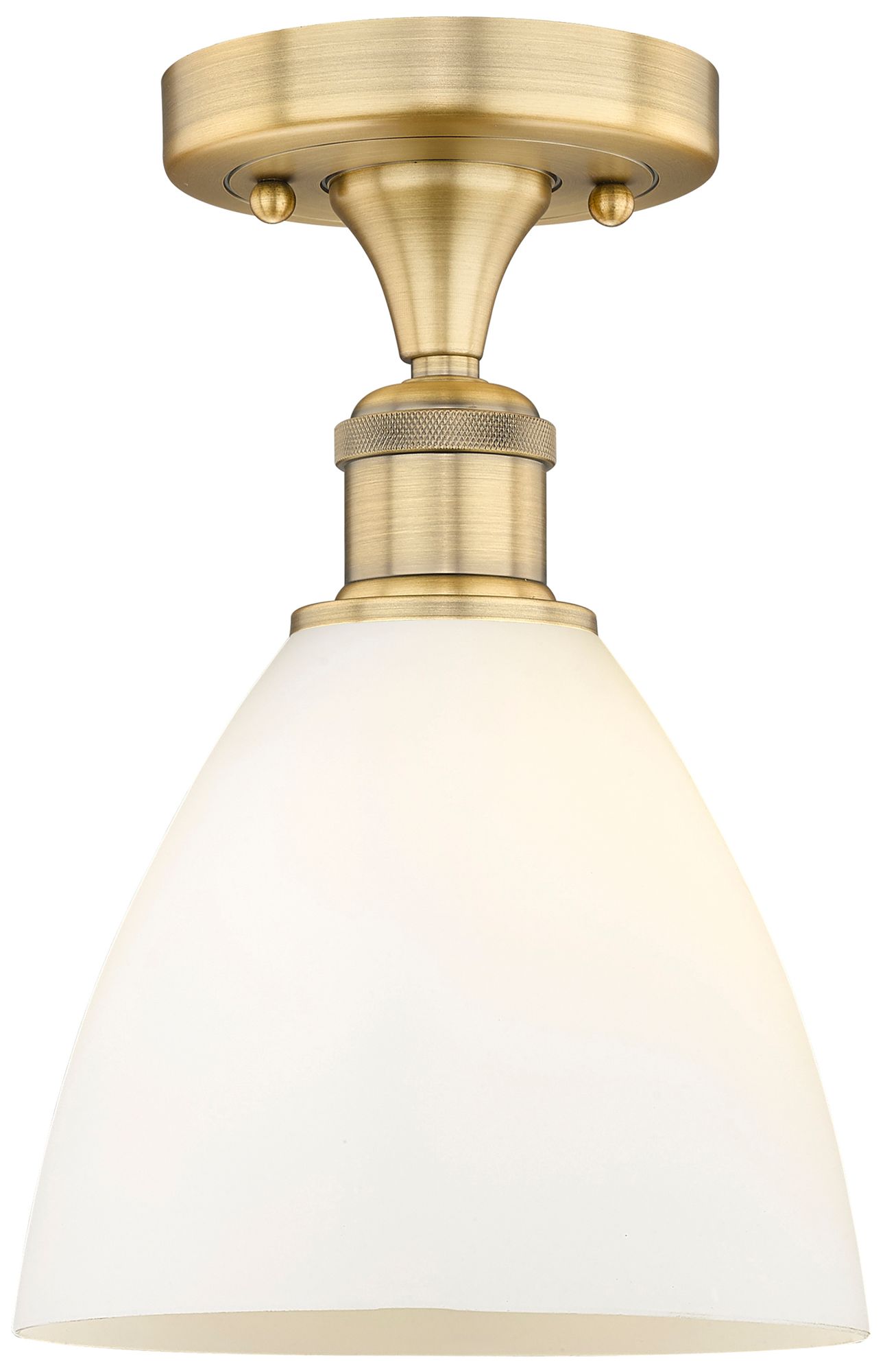 Bristol Glass 7.5"W Brushed Brass Semi.Flush Mount w/ White Shade