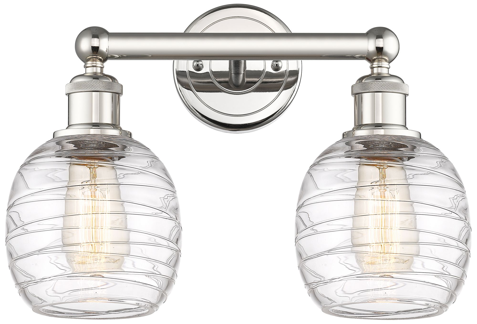 Belfast 15"W 2 Light Polished Nickel Bath Light With Deco Swirl Shade