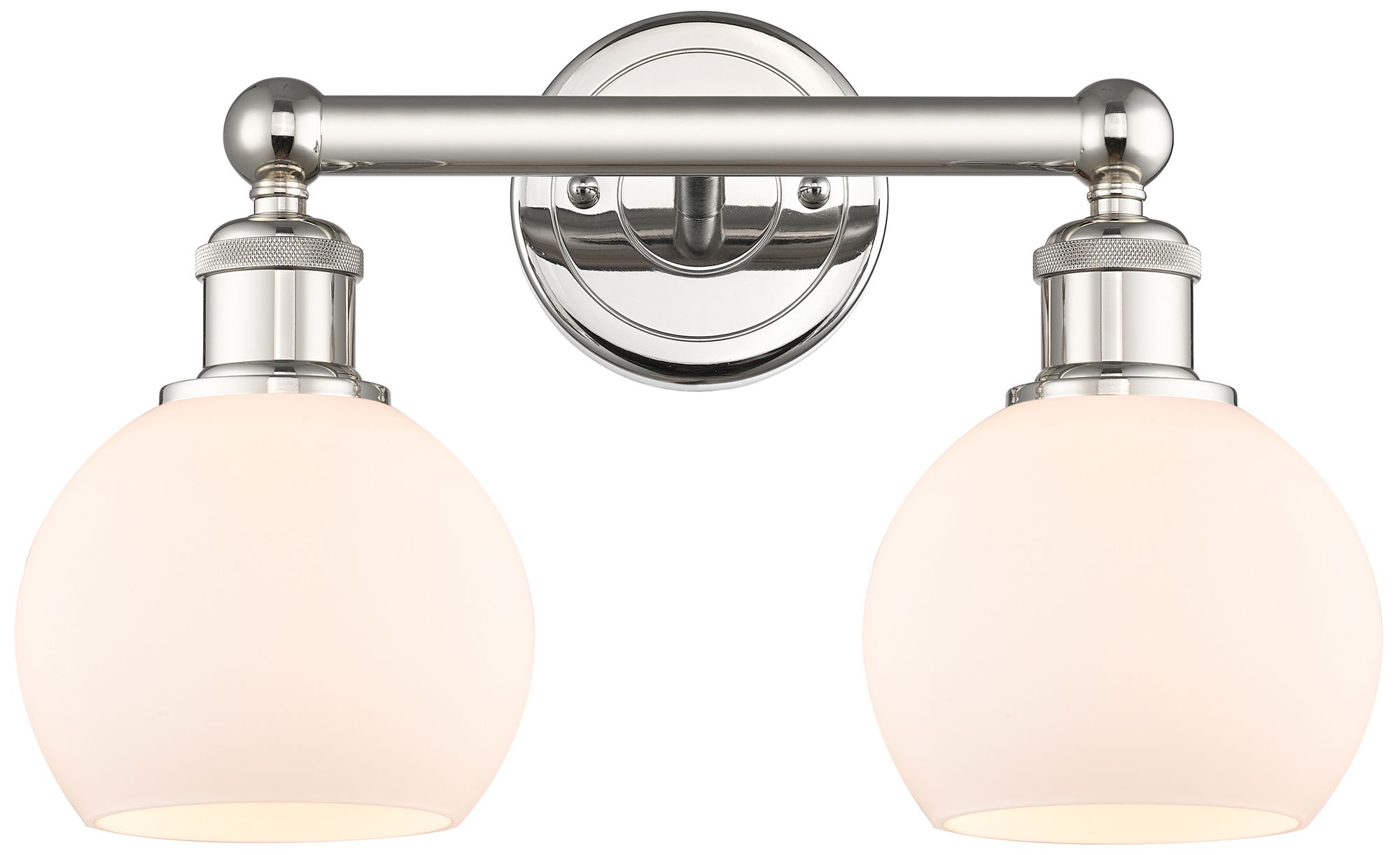 Athens 15"W 2 Light Polished Nickel Bath Vanity Light With White Shade