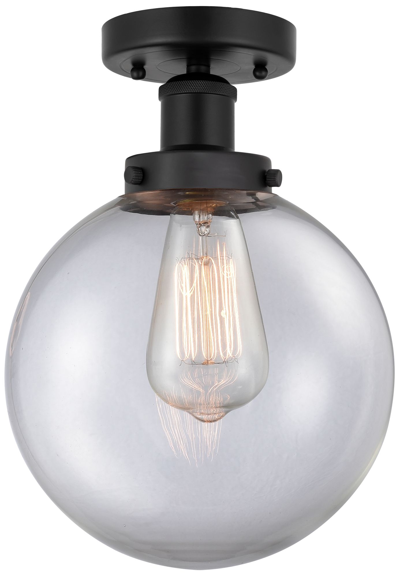 Edison Large Beacon 7" Matte Black Semi Flush Mount w/ Clear Shade