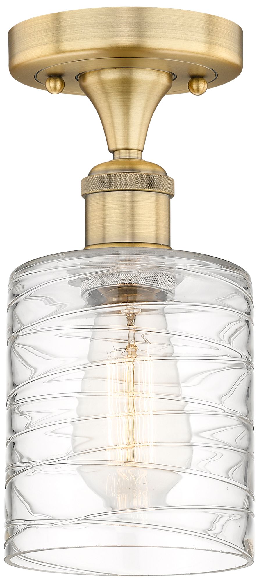 Cobbleskill 5"W Brushed Brass Semi.Flush Mount With Deco Swirl Glass S