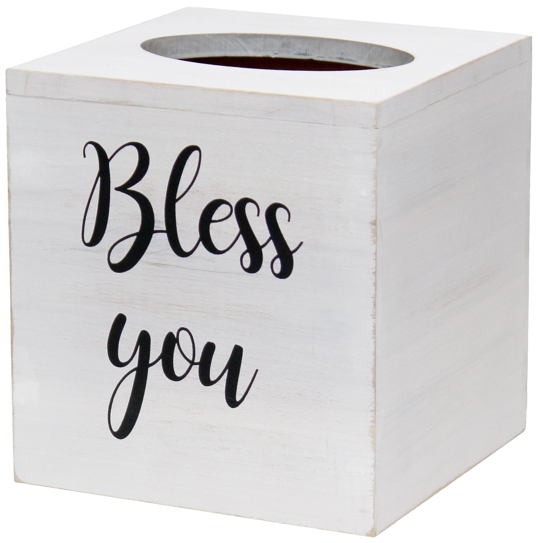 Elegant Designs Tissue Box Cover with "Bless You" in White, White