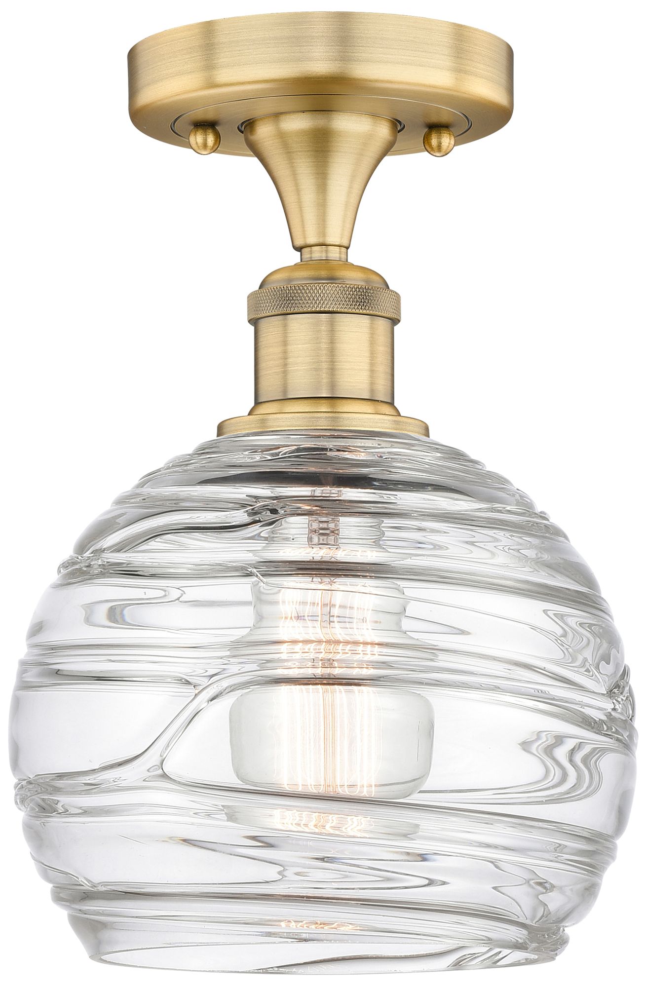 Athens 8" Wide Brushed Brass Semi.Flush Mount With Deco Swirl Glass Sh