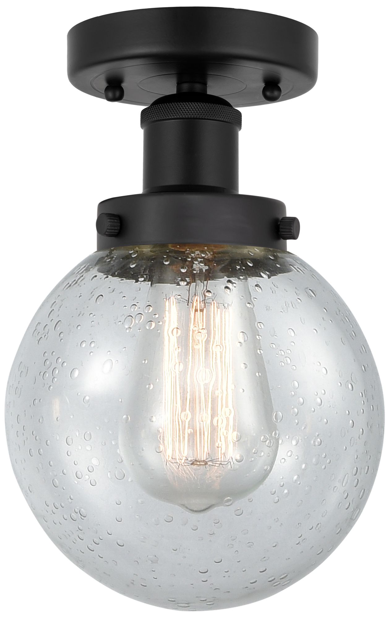 Small Edison Beacon 7" Matte Black Semi Flush Mount w/ Mercury Shade