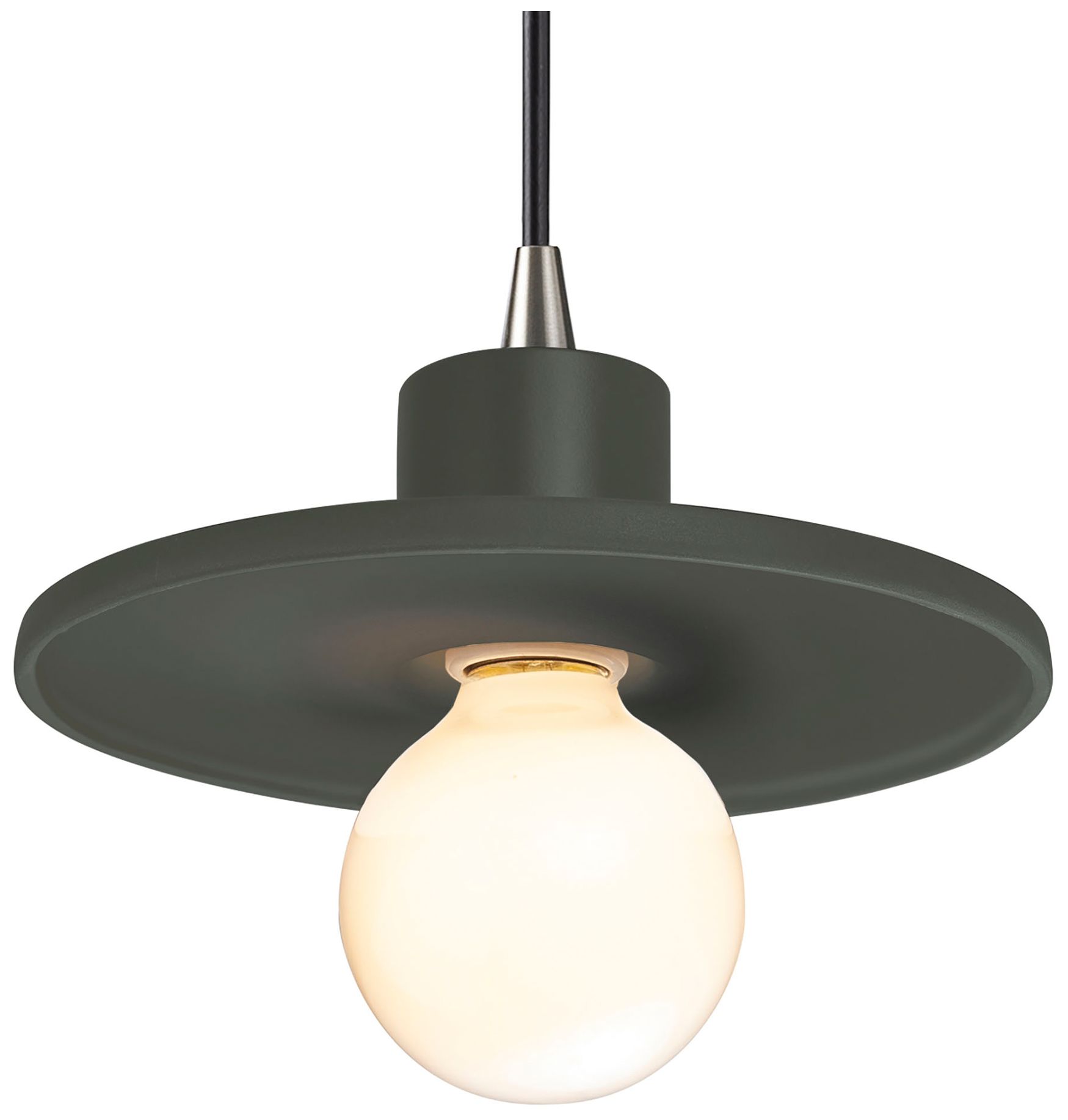Saucer 8" Wide Pewter Green and Brushed Nickel Pendant
