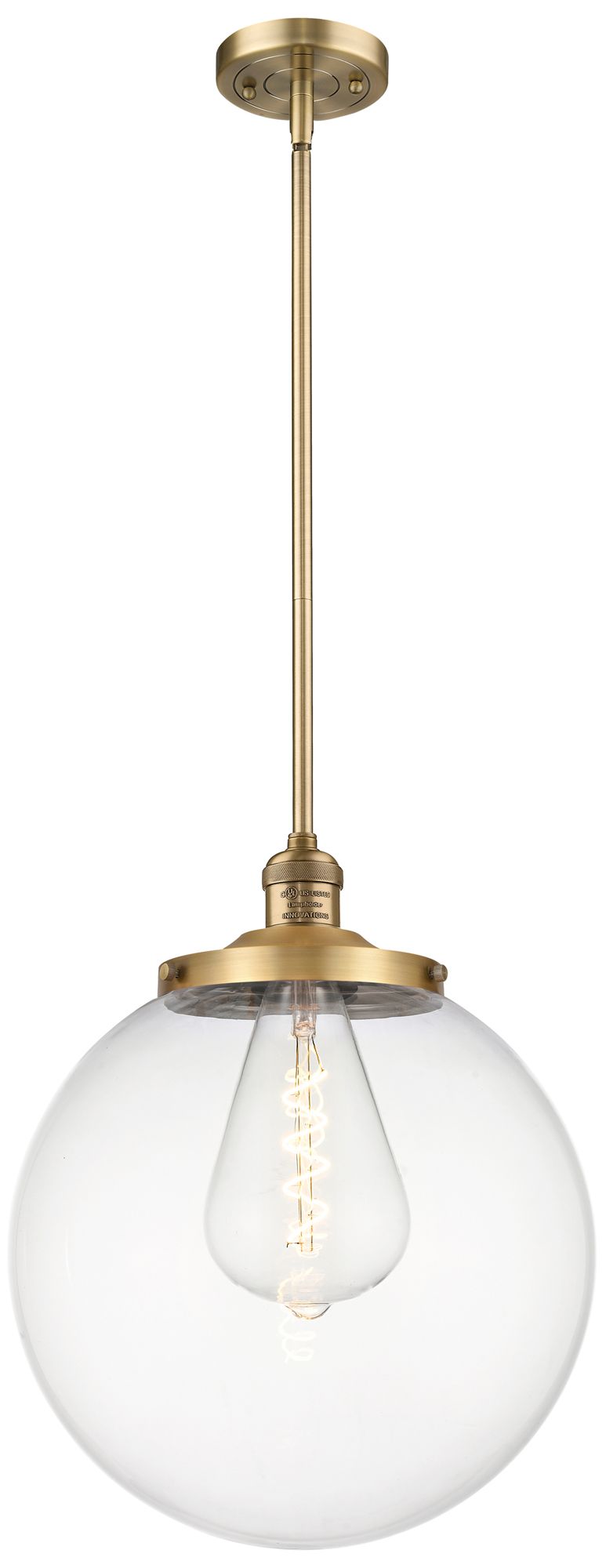 Beacon 14" Wide Brushed Brass Pendant With Clear Shade