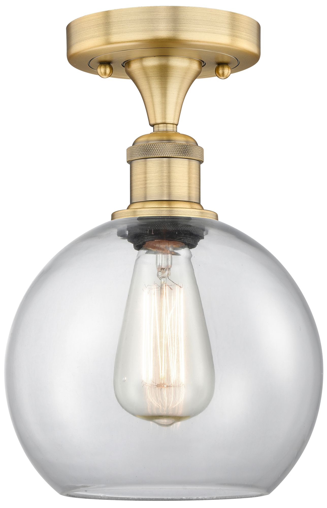 Athens 8" Wide Brushed Brass Semi.Flush Mount With Clear Glass Shade