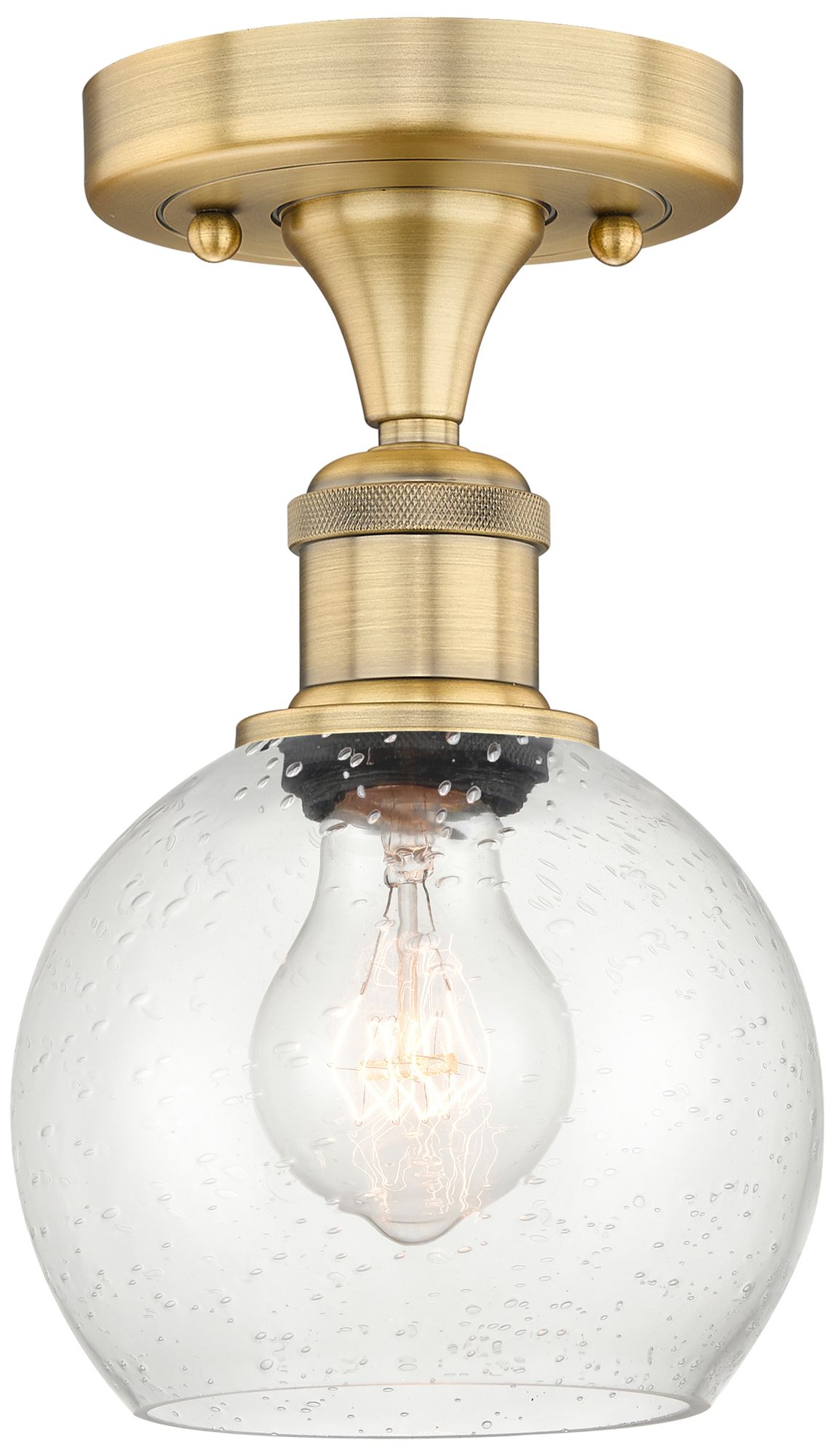 Athens 6" Wide Brushed Brass Semi.Flush Mount With Seedy Glass Shade