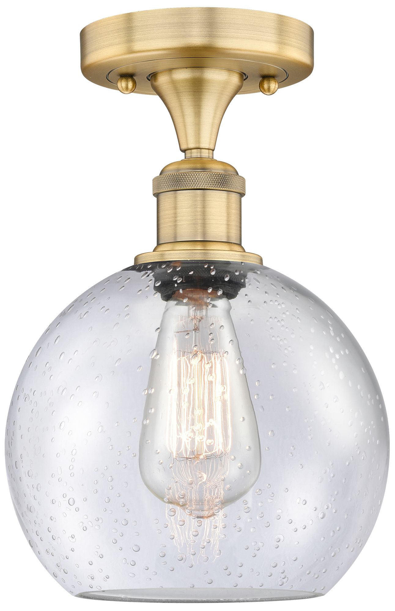 Athens 8" Wide Brushed Brass Semi.Flush Mount With Seedy Glass Shade
