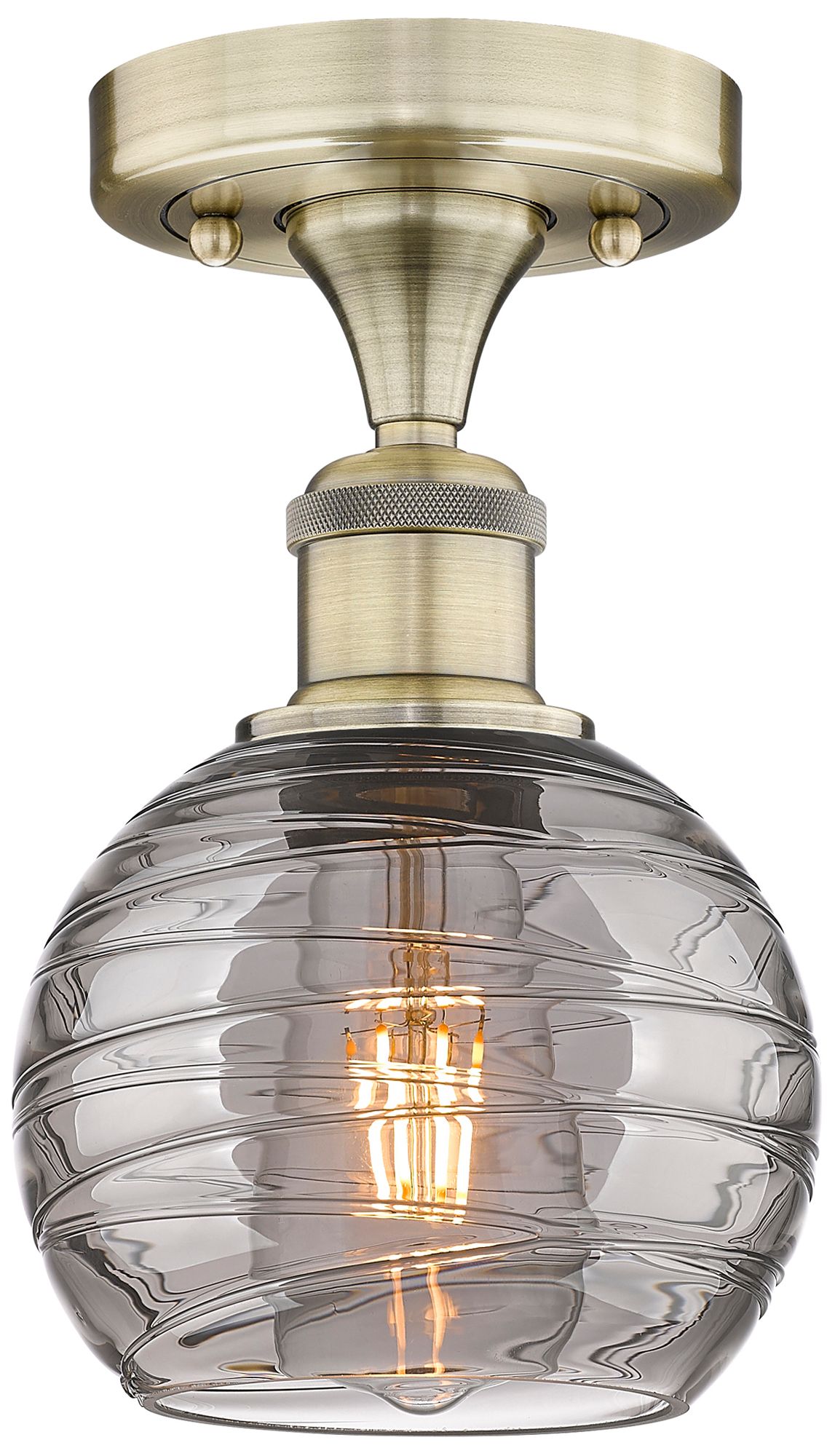 Edison Athens 5.88"W Antique Brass Semi-Flush Mount w/ Smoke Swirl Sha