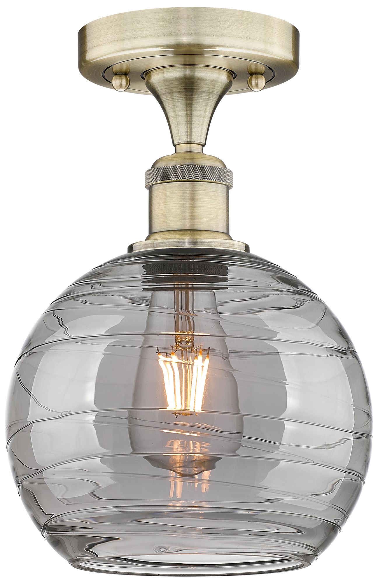Edison Athens 8"W Antique Brass Semi-Flush Mount w/ Smoke Swirl Shade