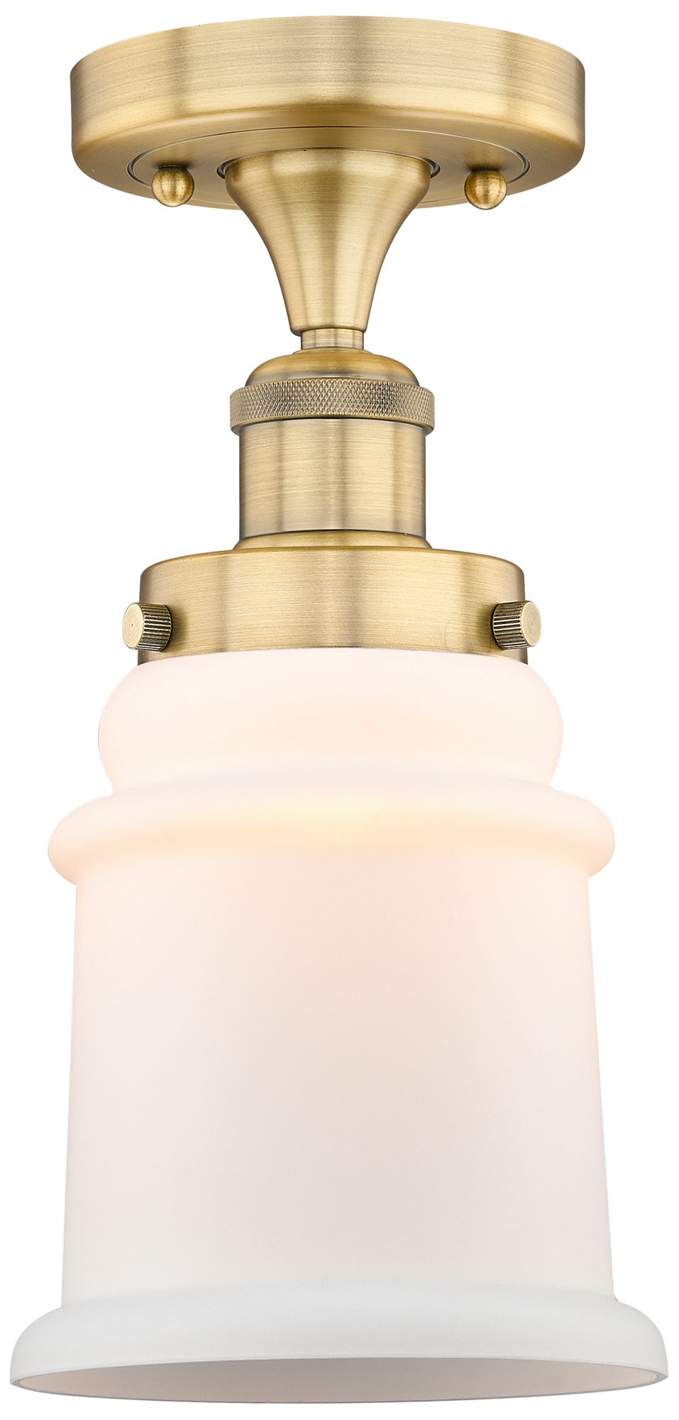 Canton 6" Wide Brushed Brass Semi.Flush Mount With Matte White Glass S