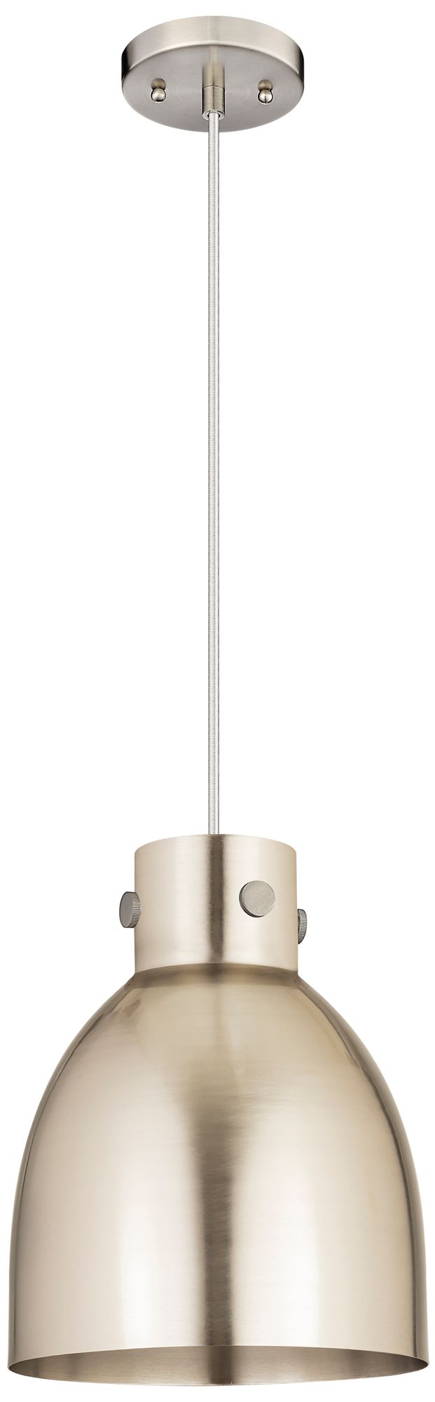 Newton Metal Bell 10"W Satin Nickel Cord Hung Pendant w/ Satin Nickel