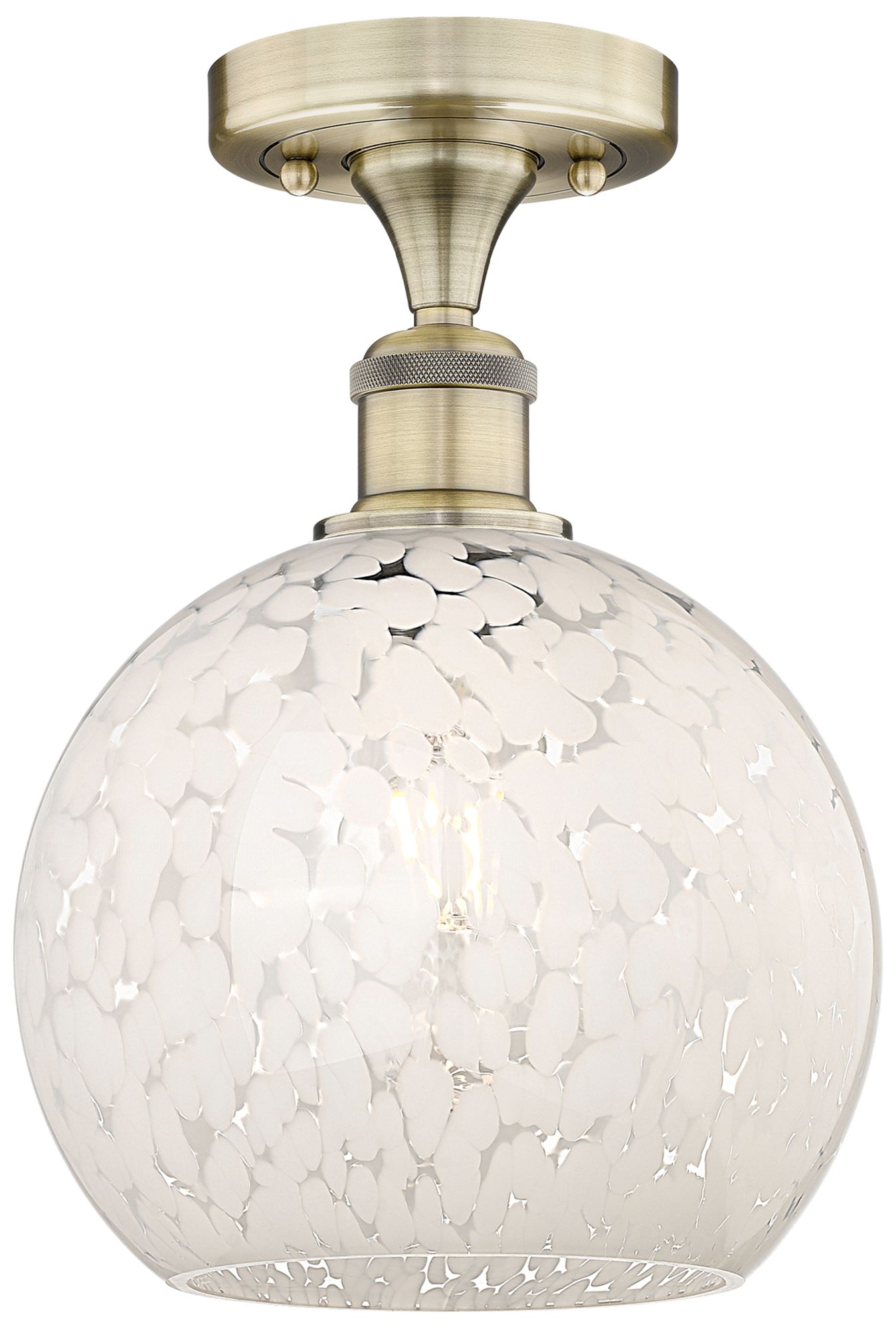 Edison 8" Wide Antique Brass Semi-Flush Mount With White Mouchette Sha