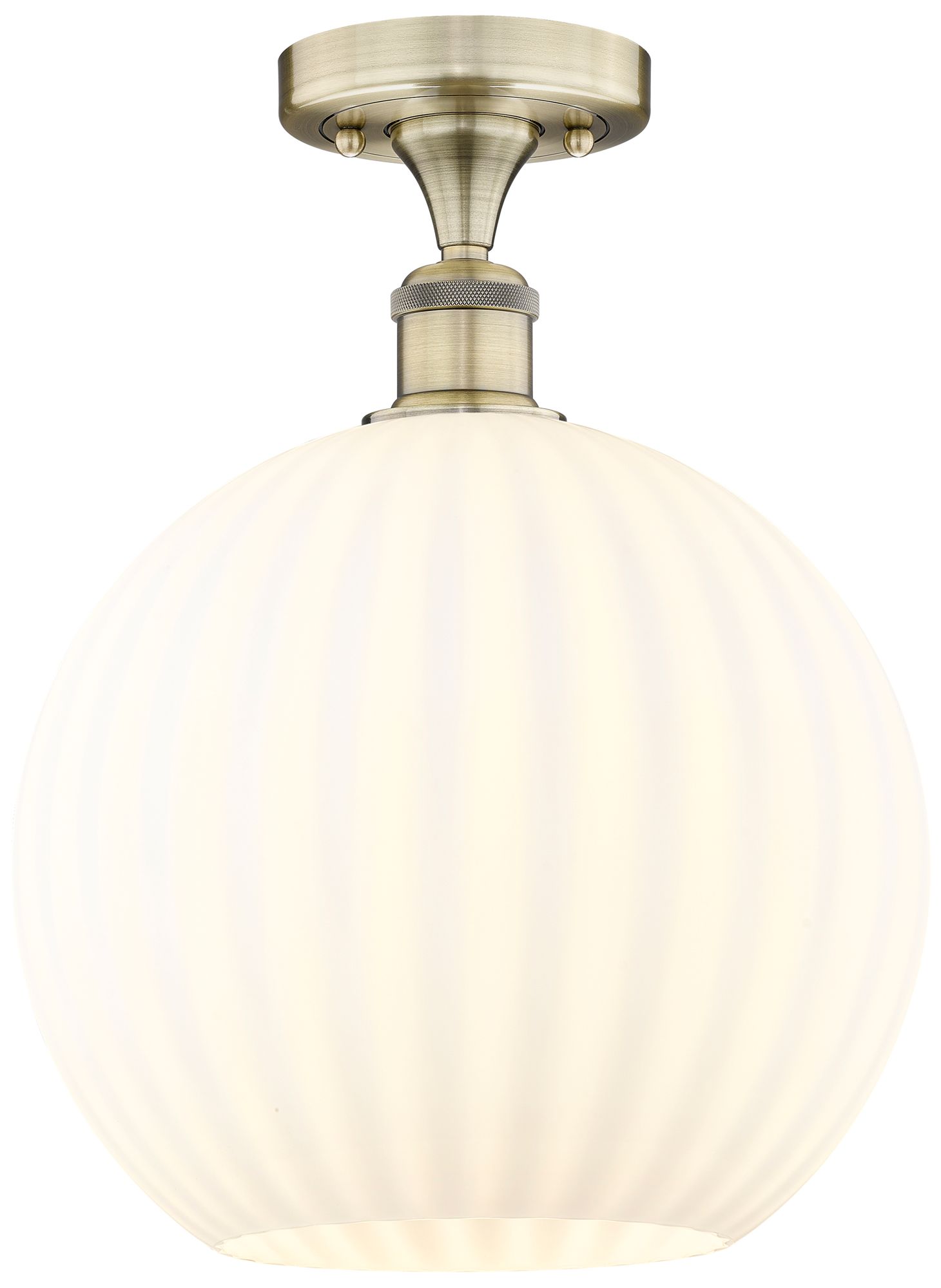 Edison 12" Wide Antique Brass Semi-Flush Mount With White Venetian Sha