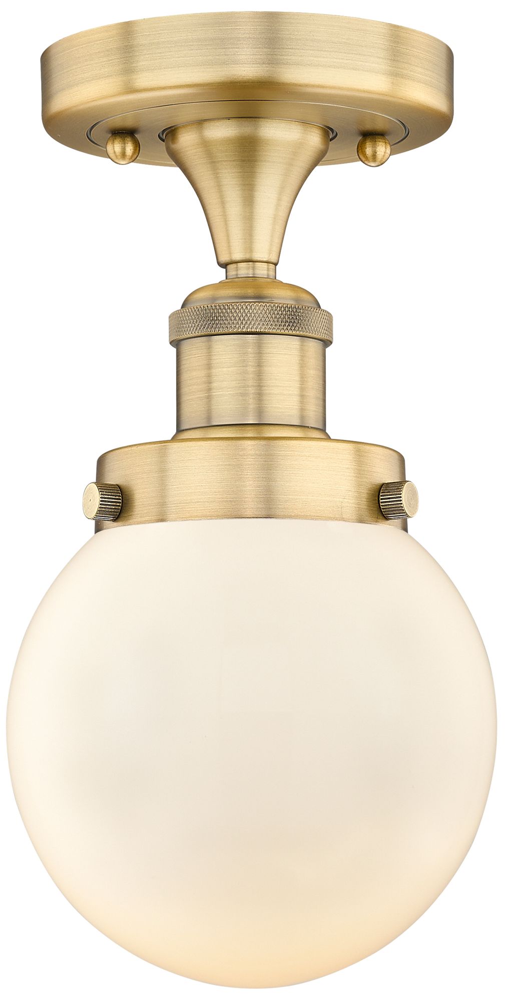 Beacon 6" Wide Brushed Brass Semi.Flush Mount With Matte White Glass S