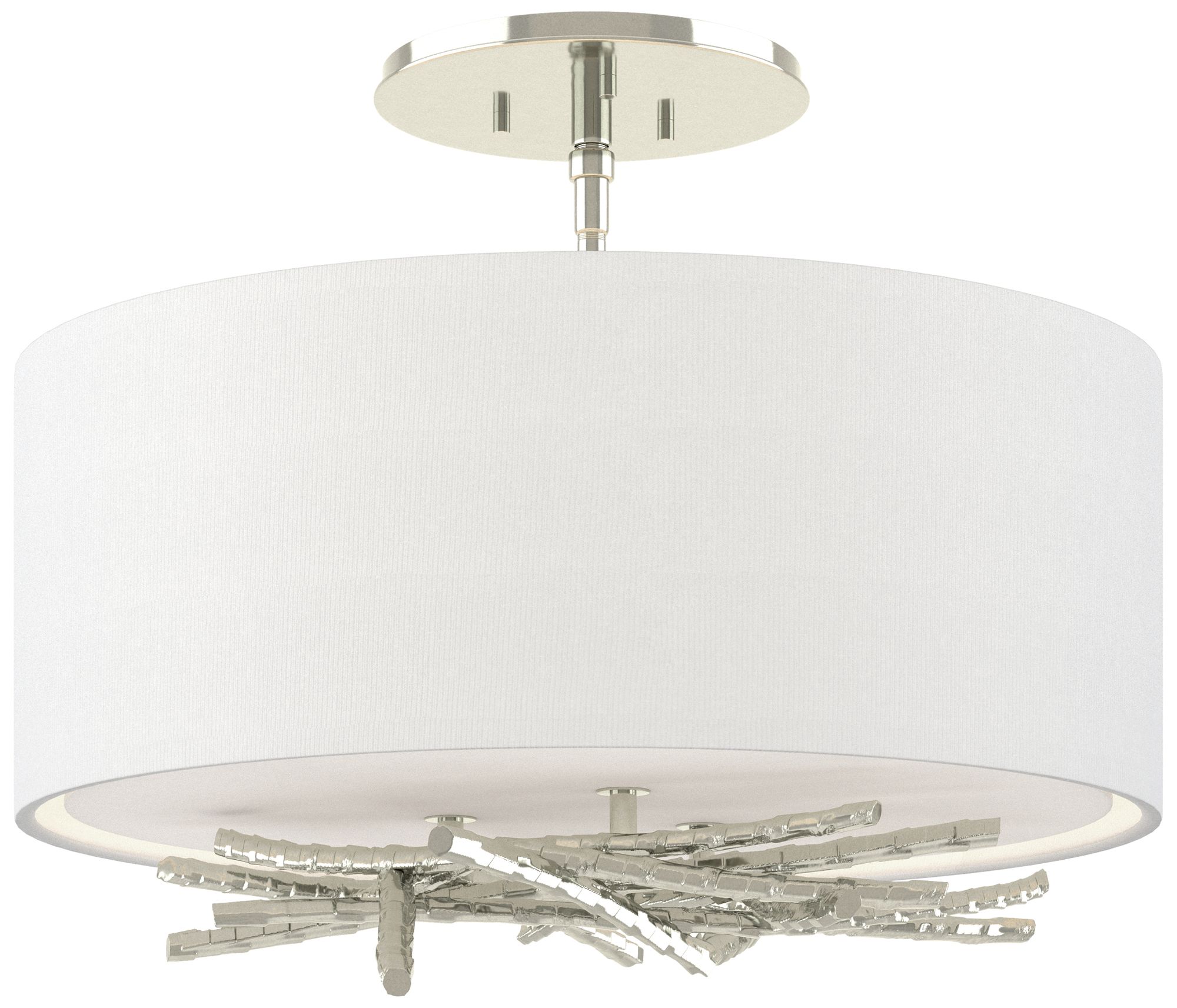 Brindille 15" Wide Sterling Semi-Flush With Natural Anna Shade