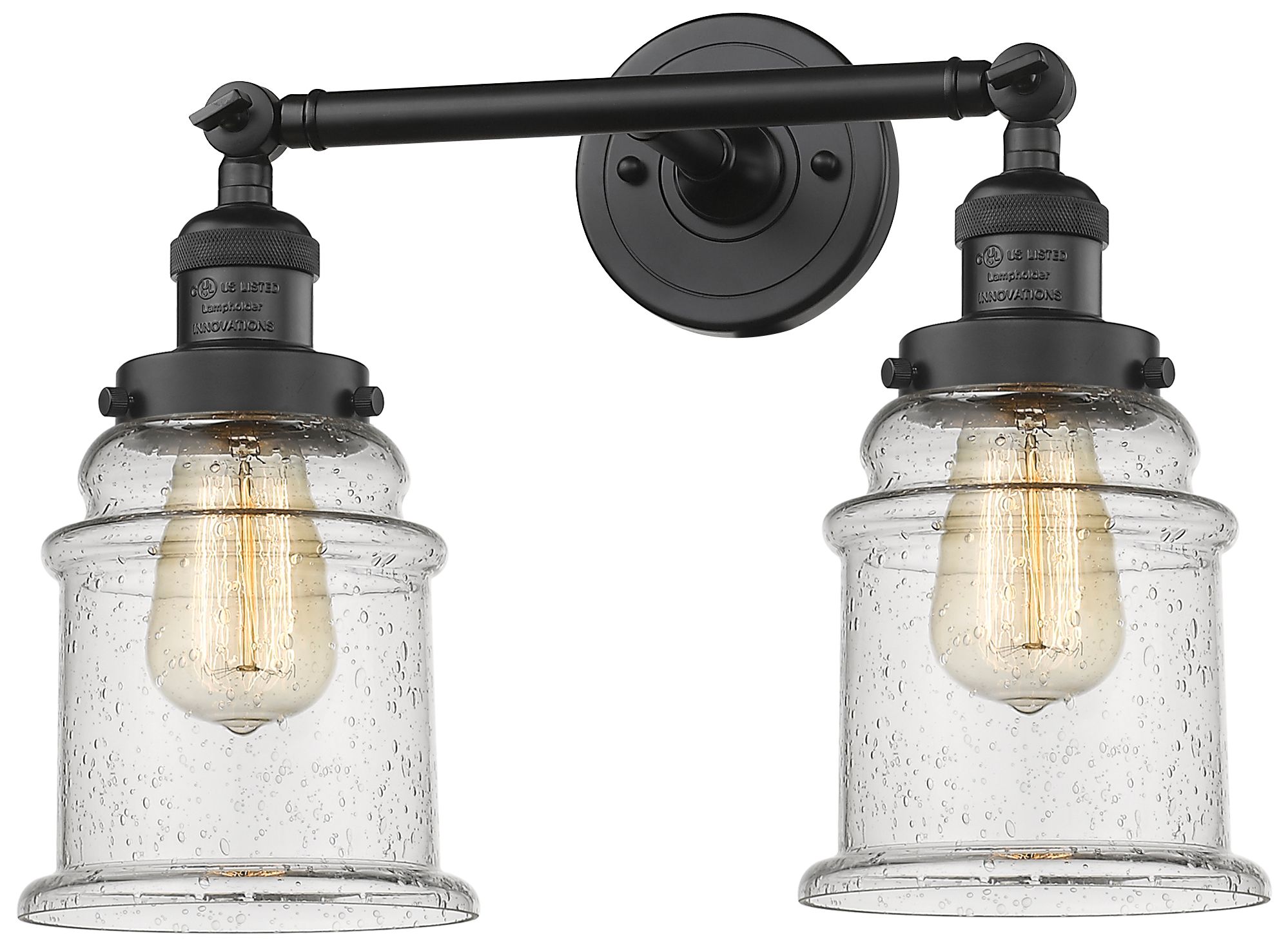 Large Canton 17" 2-Light Matte Black Bath Light w/ Seedy Shade