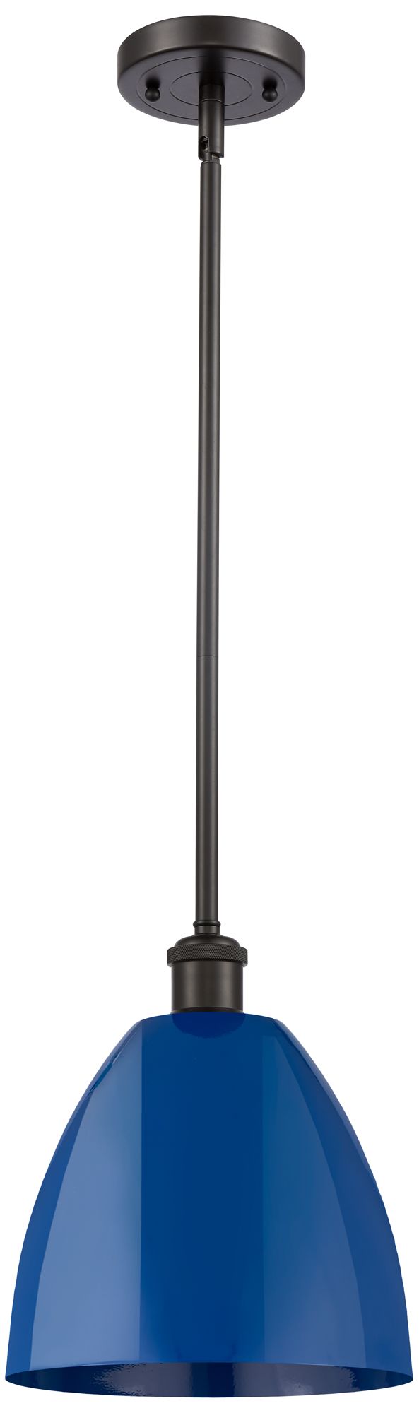 Plymouth Dome 9" Wide Oil Rubbed Bronze Stem Hung Pendant w/ Blue Shad