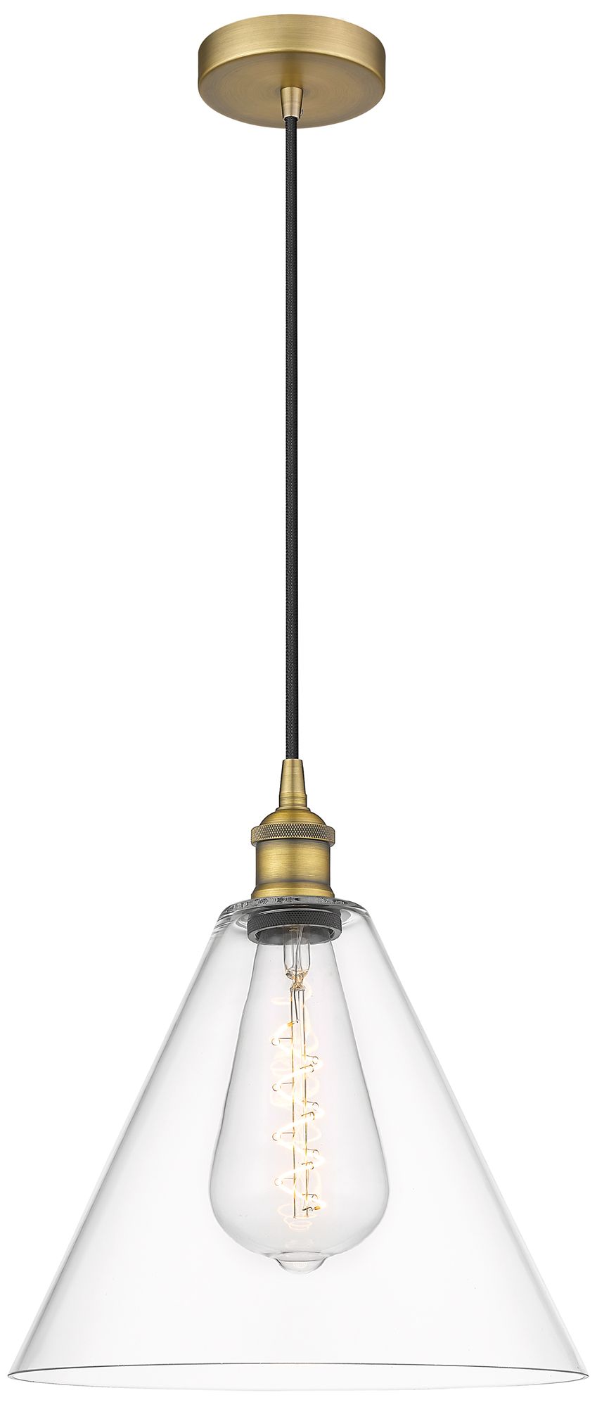 Edison Glass Cone 12" Brushed Brass Cord Hung Mini Pendant w/ Clear Sh