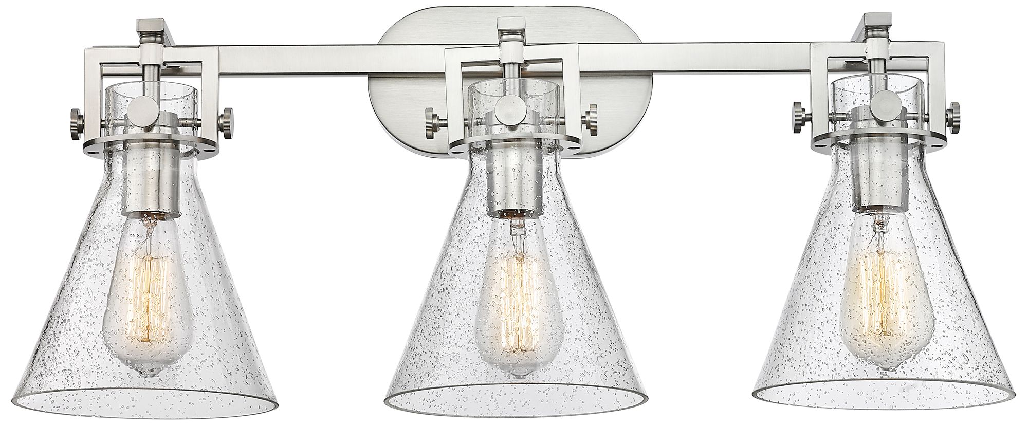 Newton Cone 27" Wide 3 Light Satin Nickel Bath Light With Seedy Shade