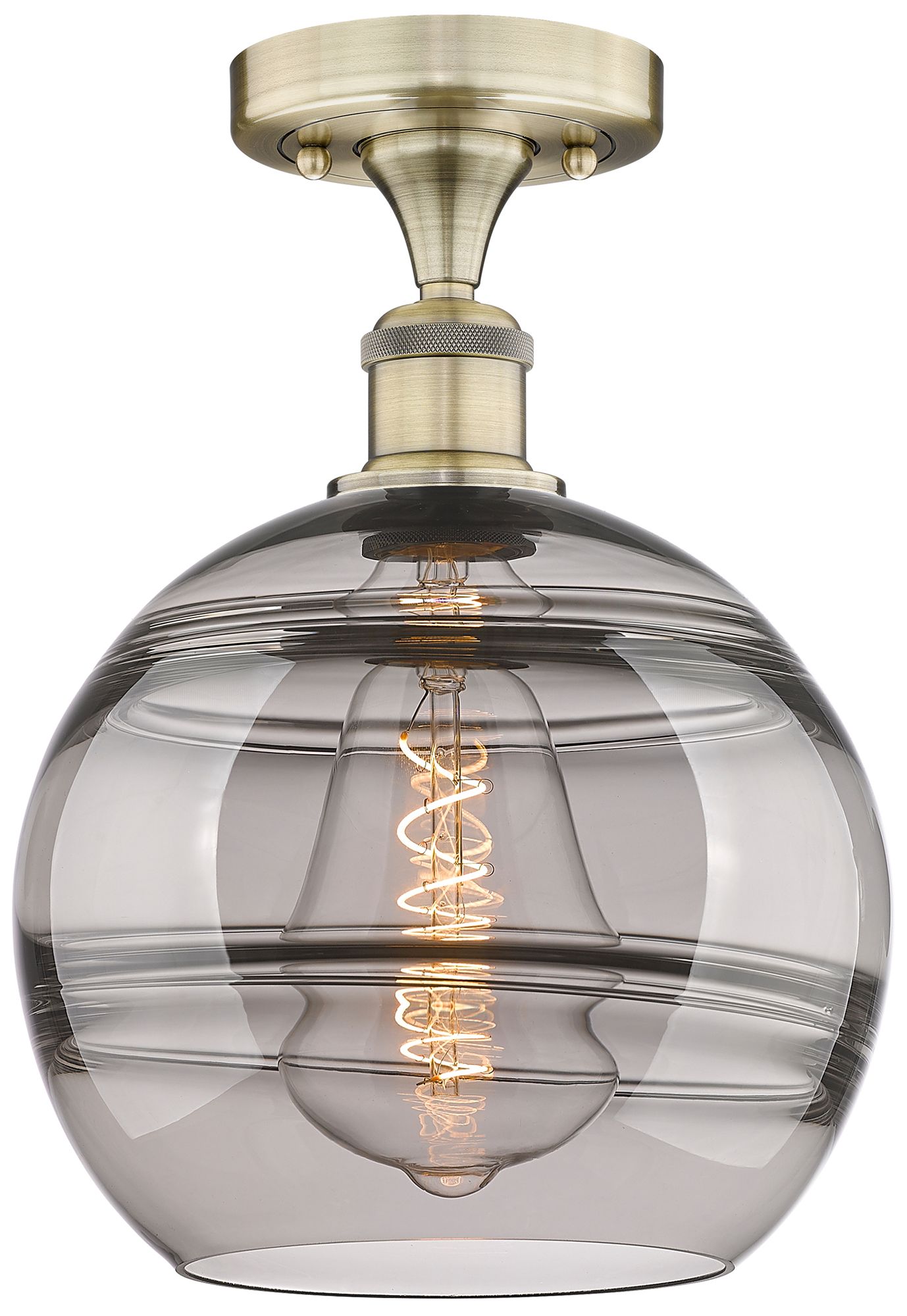 Edison Rochester 10"W Antique Brass Semi-Flush Mount w/ Light Smoke Sh