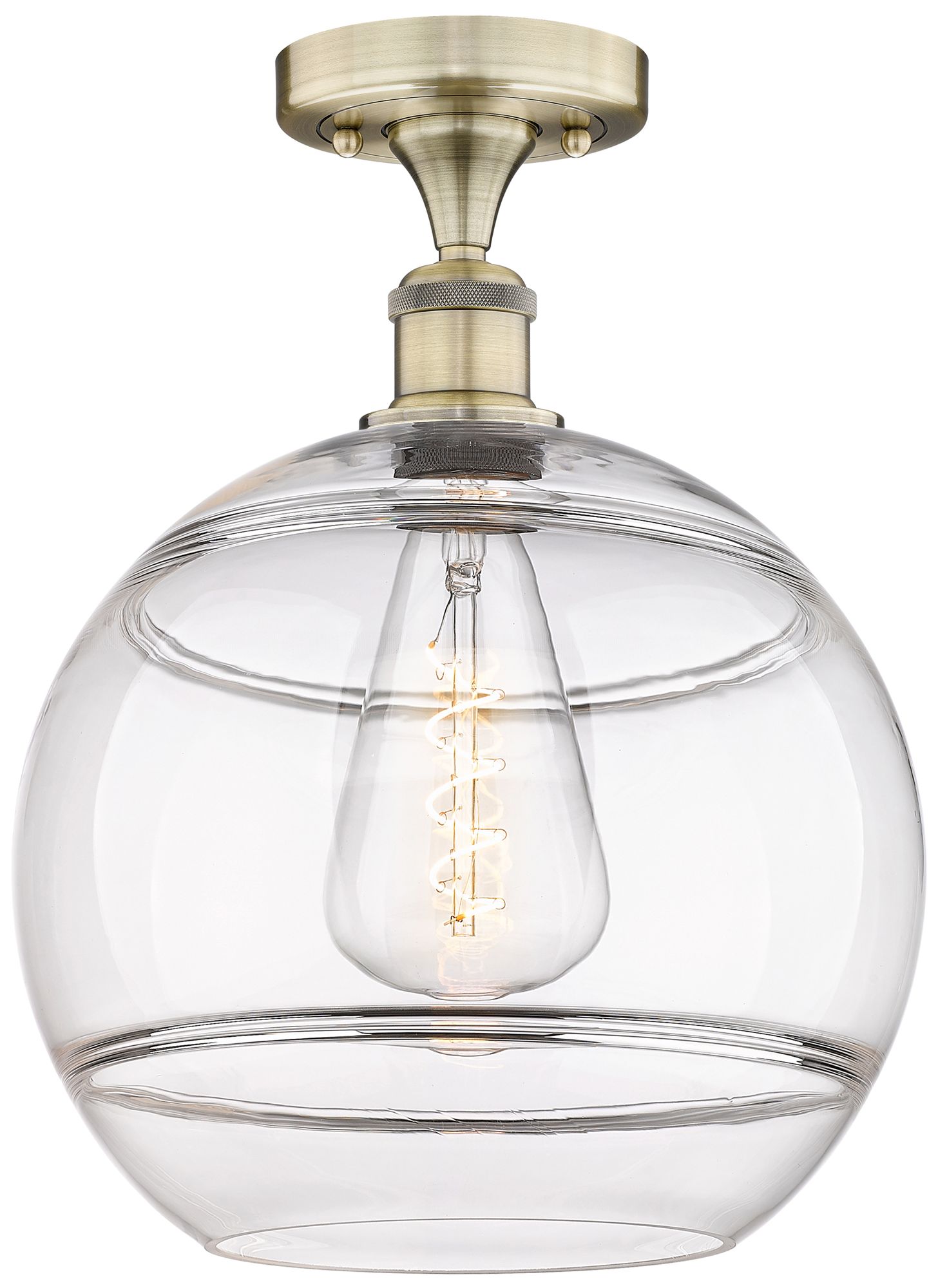 Edison Rochester 12" Wide Antique Brass Semi-Flush Mount With Clear Sh