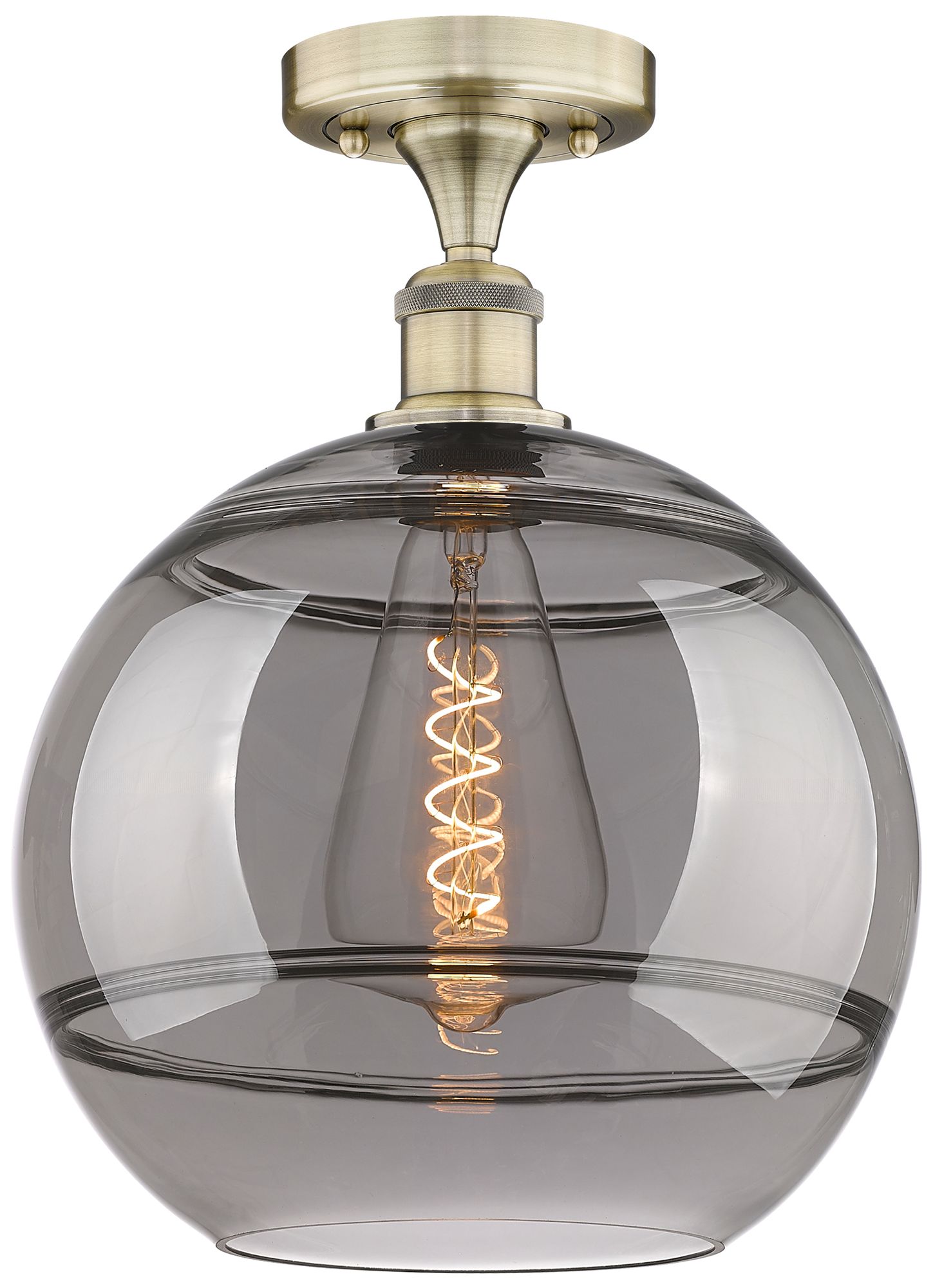 Edison Rochester 12"W Antique Brass Semi-Flush Mount w/ Light Smoke Sh